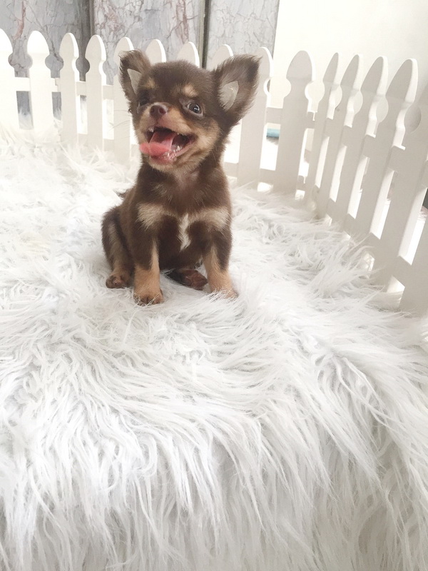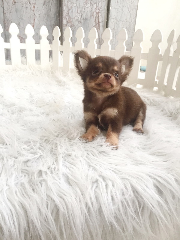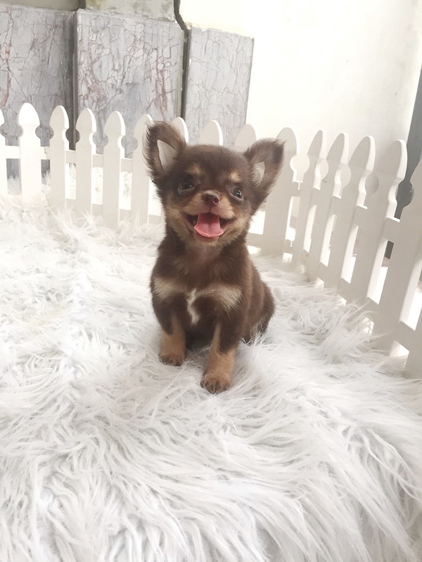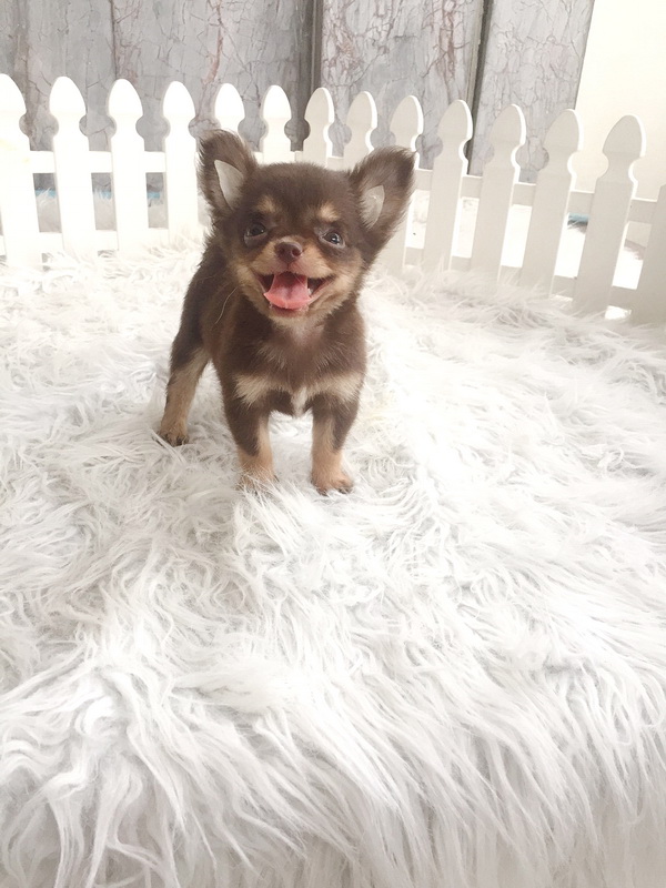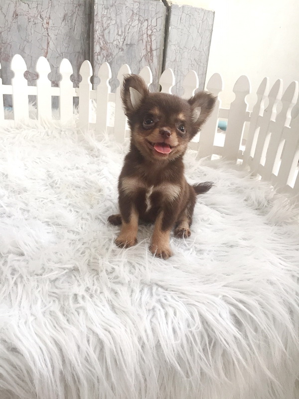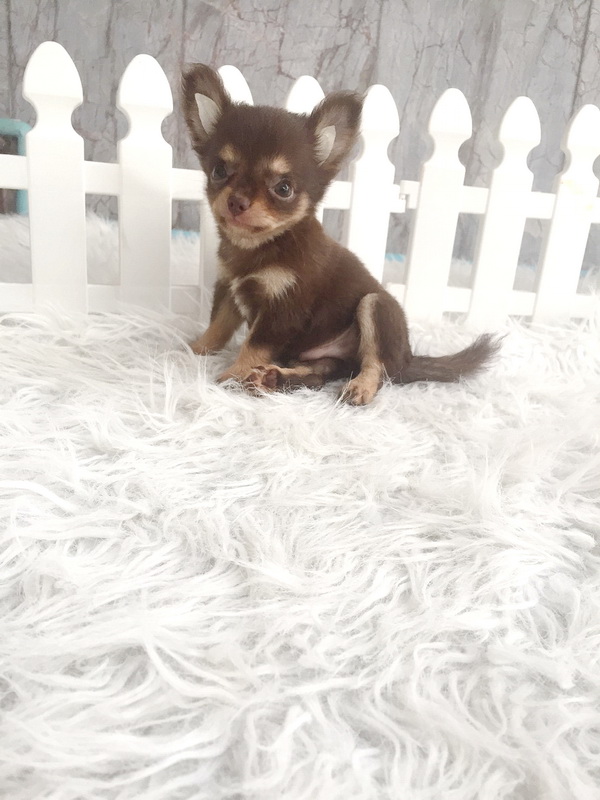 ชิวาวาเพศผู้ ขนยาว สีชอคโกแลตแทน