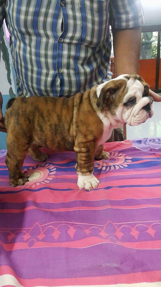 ขายลูกสุนัขเพศผู้สีขาว-ลายเสือ อายุ65วัน สายเลือดเยี่ยมโครงสร้างสวยกะโหลกใหญ่ลิงเคิ้ลล้นๆ เตี้ยสั้นพร้อมใบเพดดีกรี ราคา23000 (ราคาต่อรองได้ครับ)สนใจติดต่อ099-0070380 คุณติ๊ก