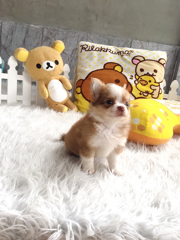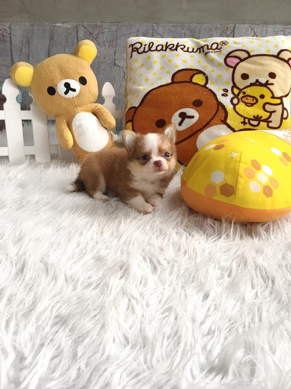 ชิวาวาเพศเมีย ขนยาว สีขาวน้ำตาลทอง ราคา 95000 บาท