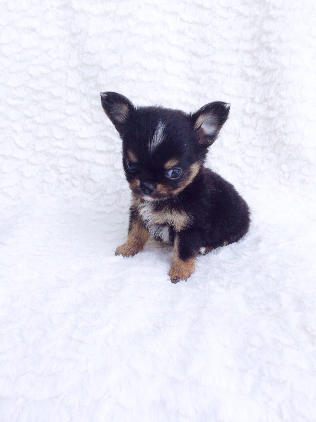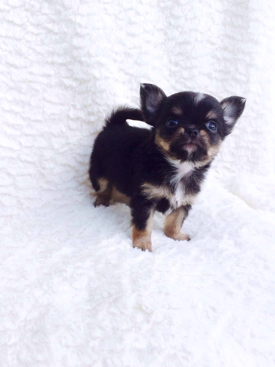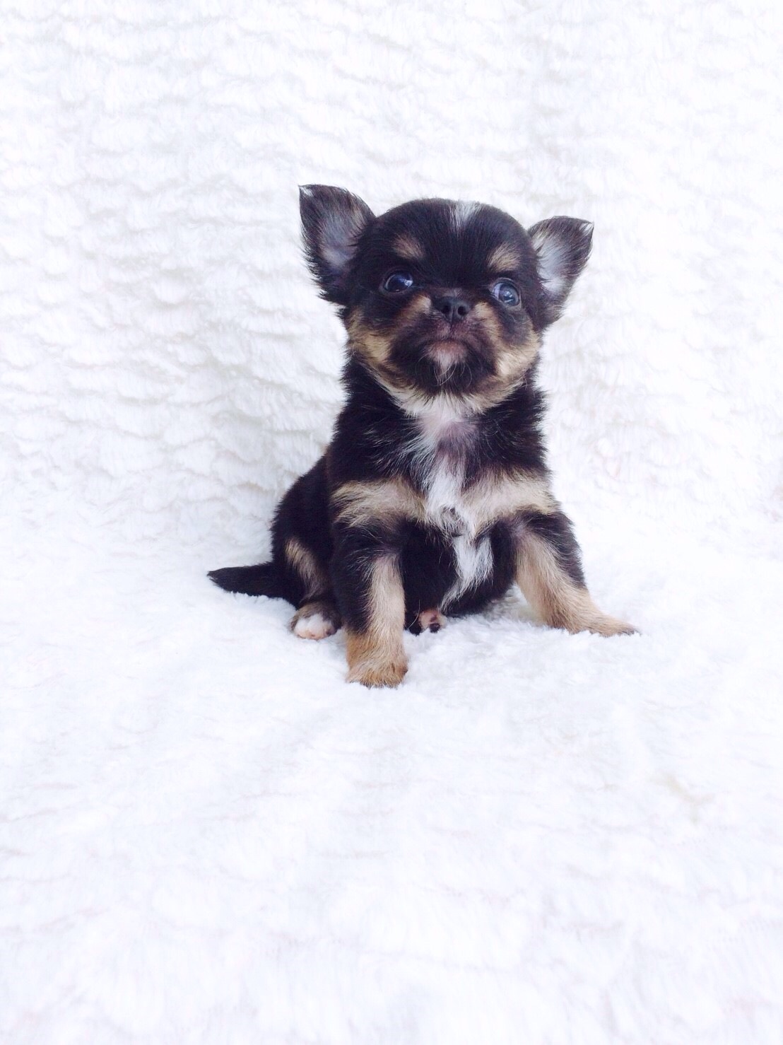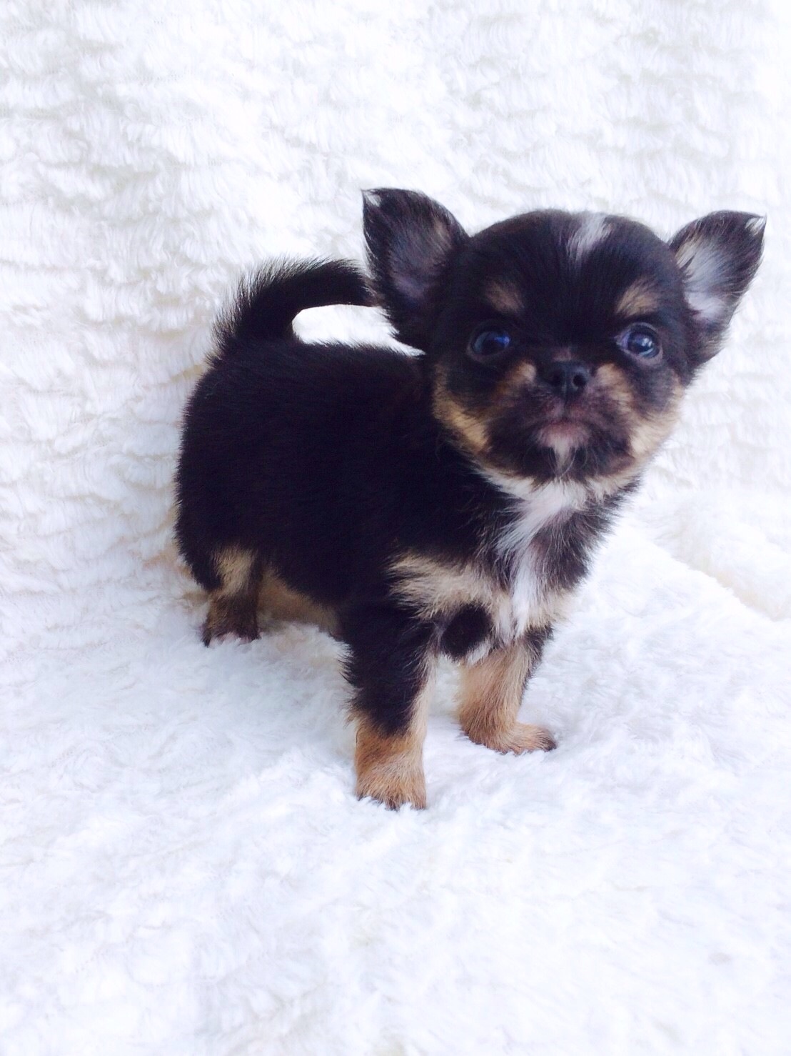 น้องชิวาวาขนยาวเพศผู้สีแบล็คแอนด์แทน ไซส์เล็ก น่ารักมากๆค่ะ