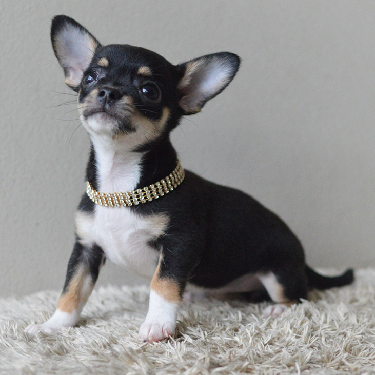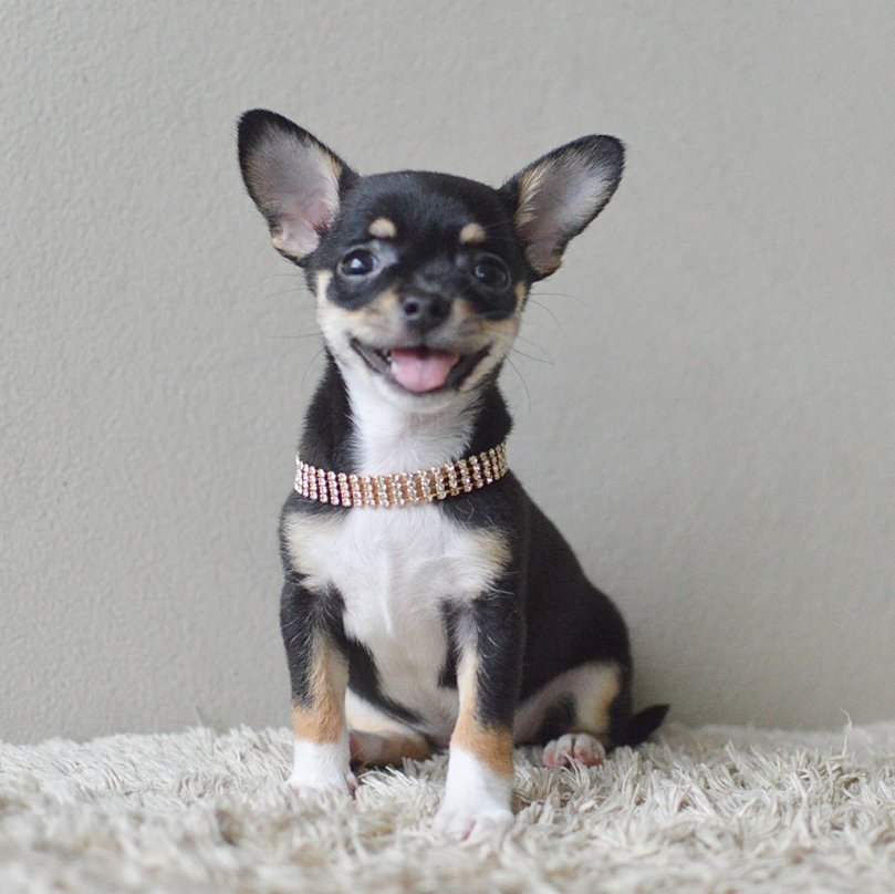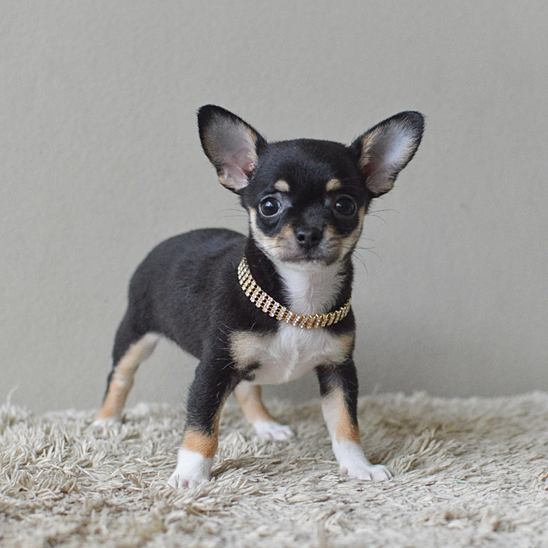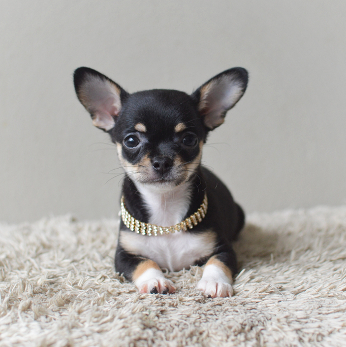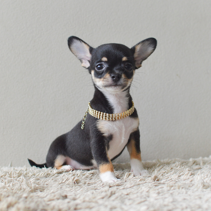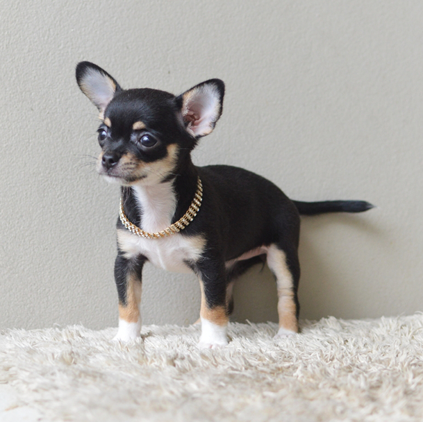 -สาวน้อยชิวาวาขนสั้นสีแบล็คแอนด์แทน