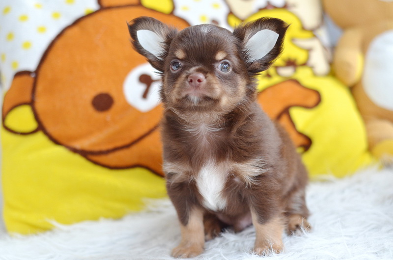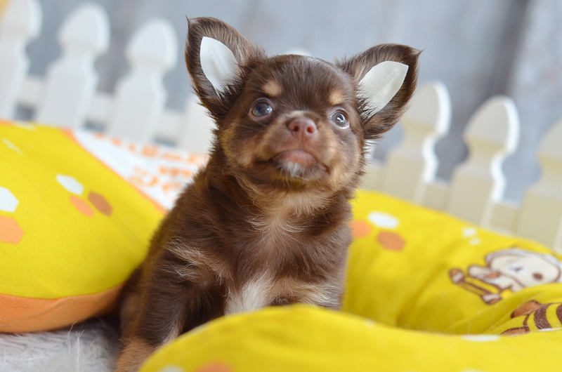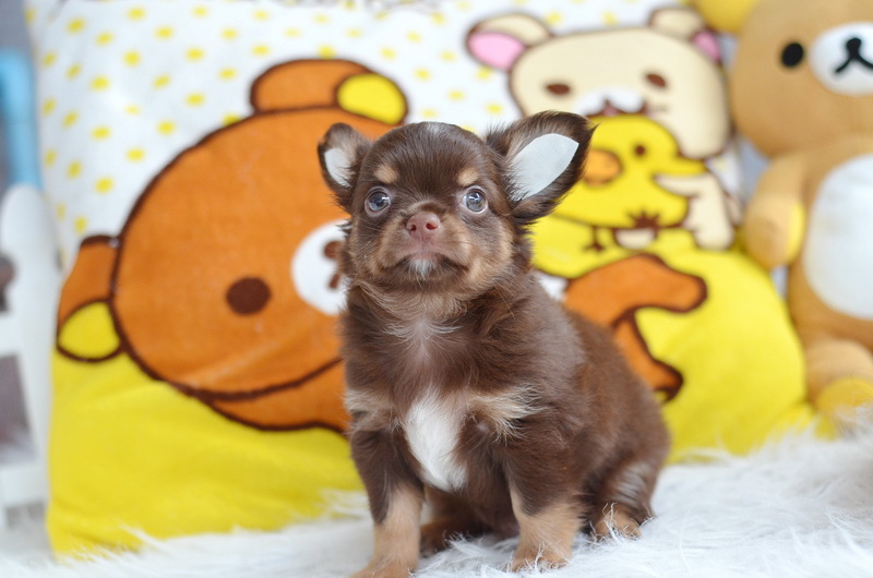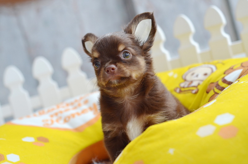 ★^-^*★ WWW.WOWWCHIHUAHUA.COM ★^-^*★." น้องไข่นุ้ย" ชิวาวาเพศผู้ ขนยาว สีชอคโกแลตแทน 9500