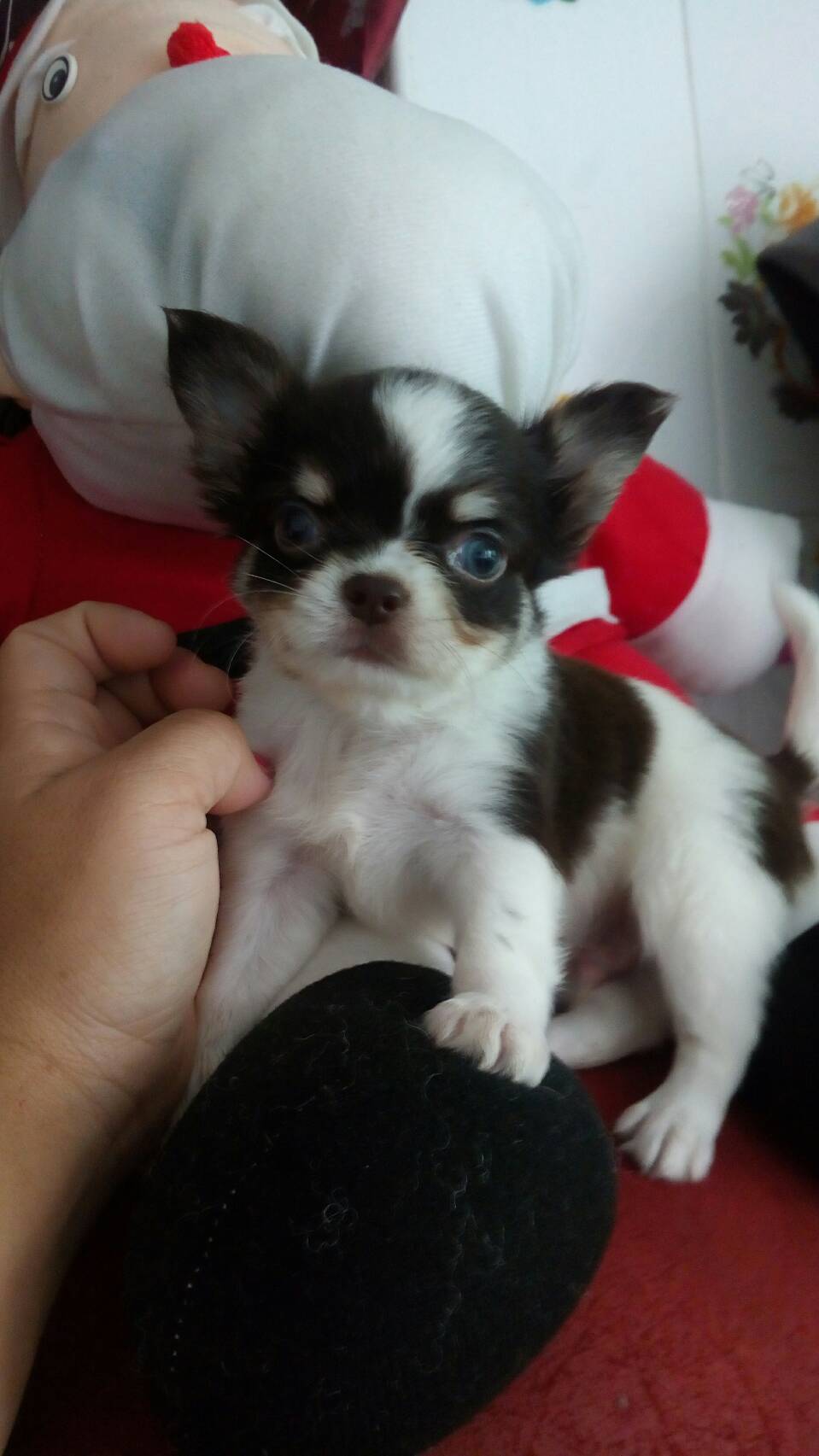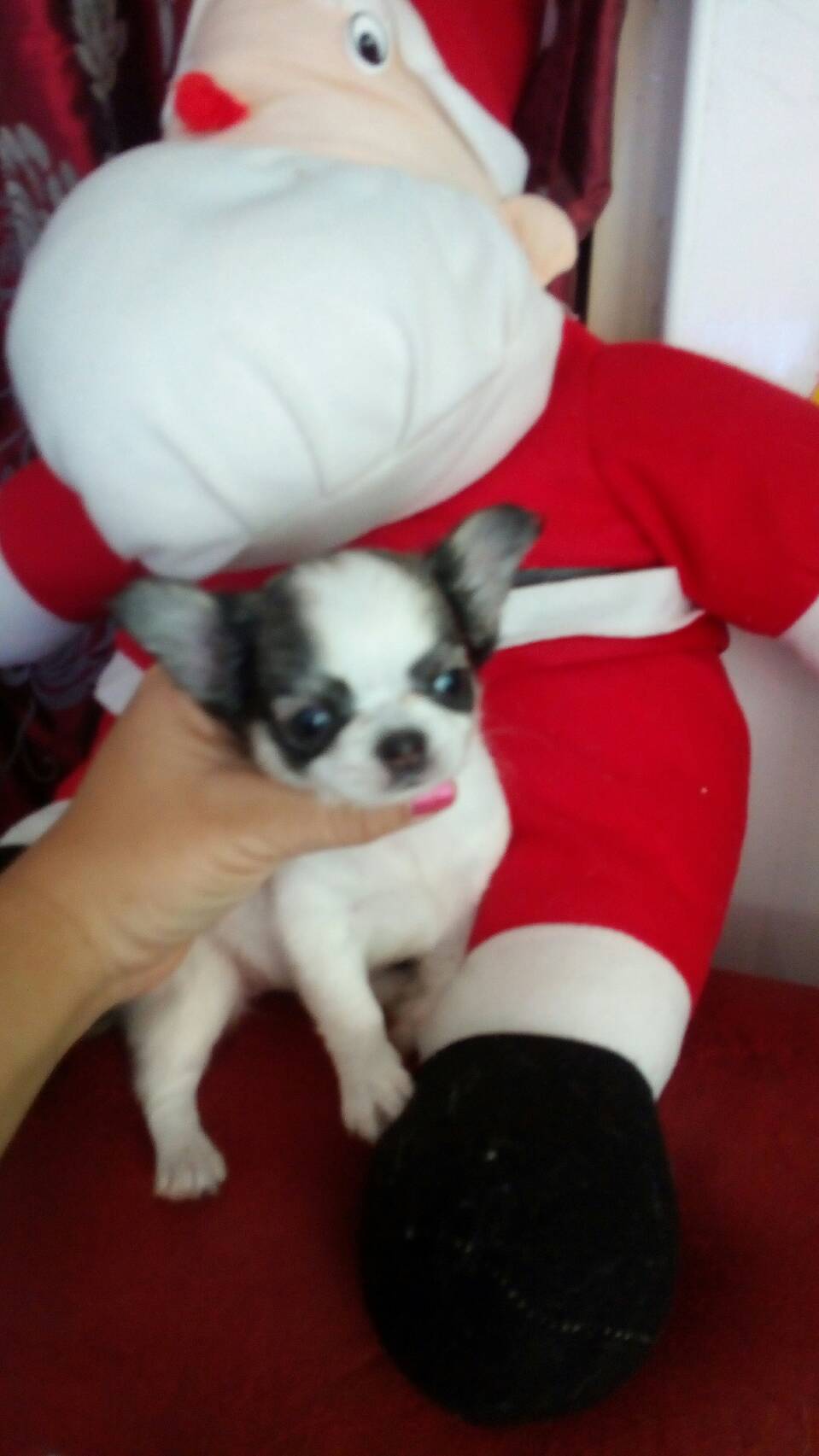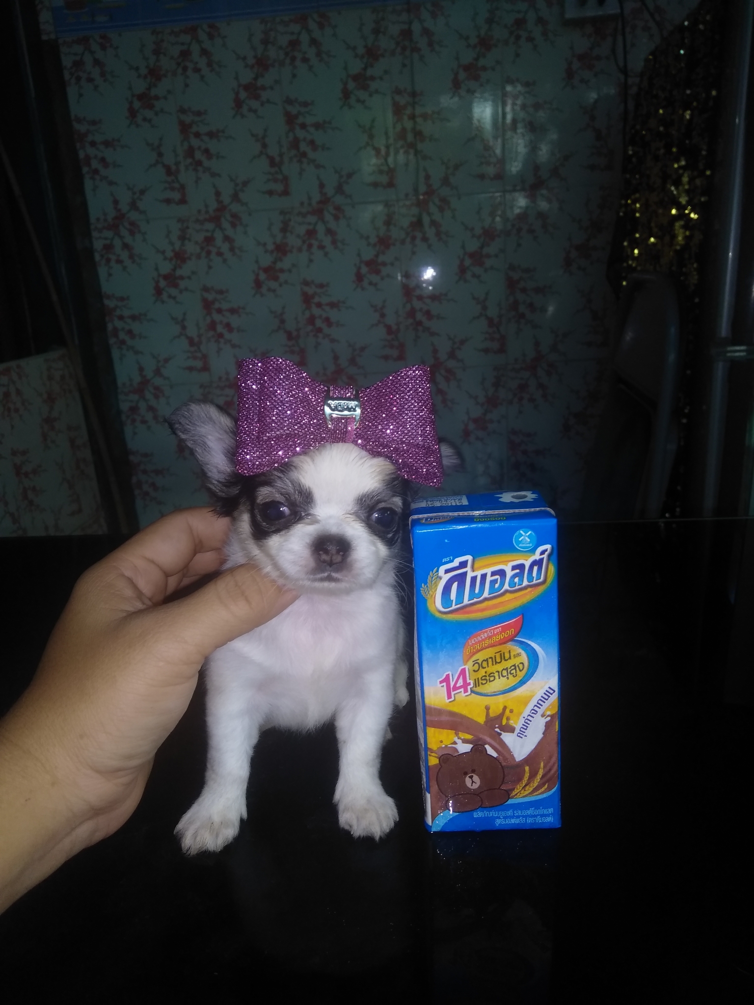 พ่อ เป็นชิวาว่าขนยาวสีขาว ดำ