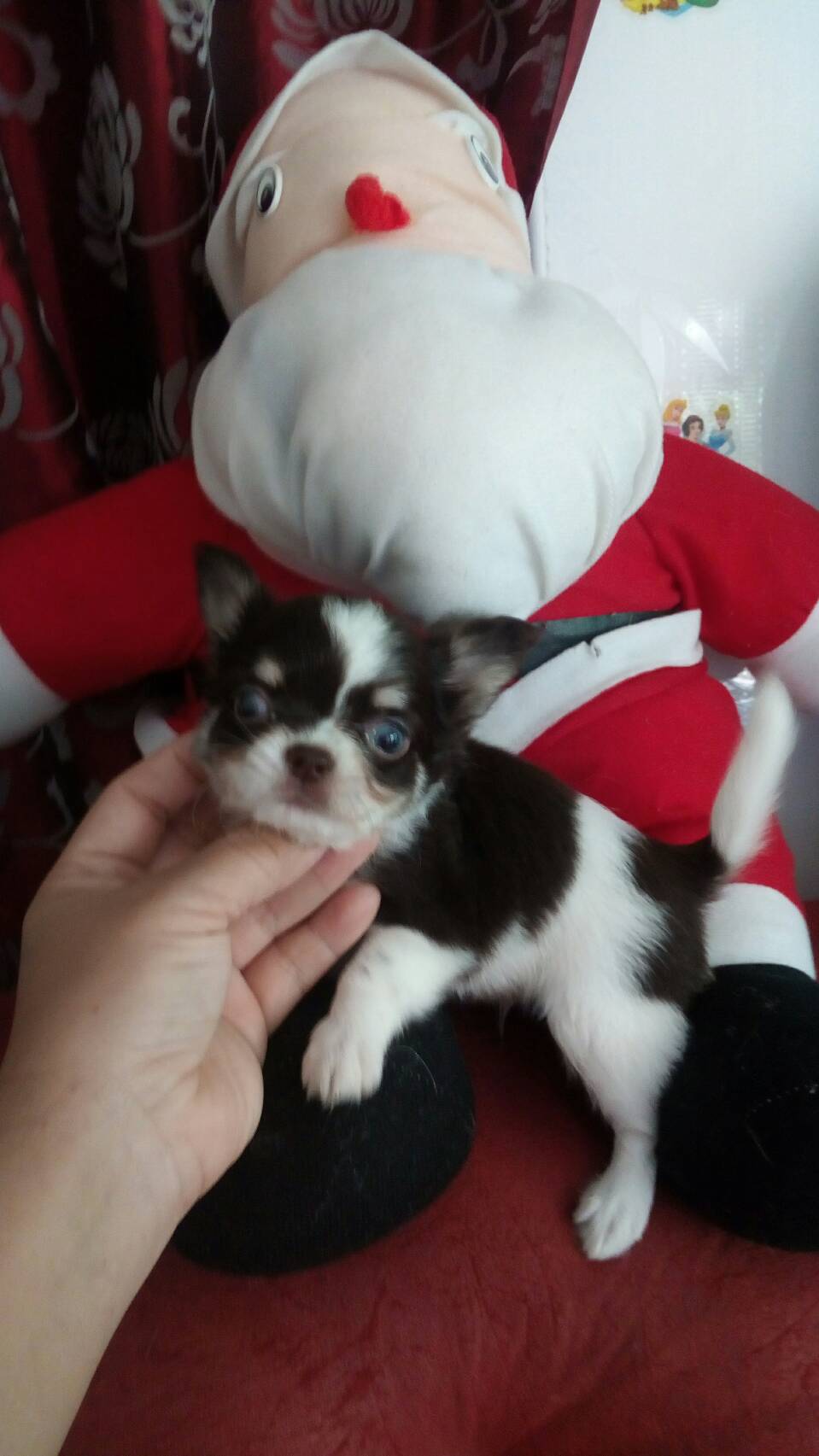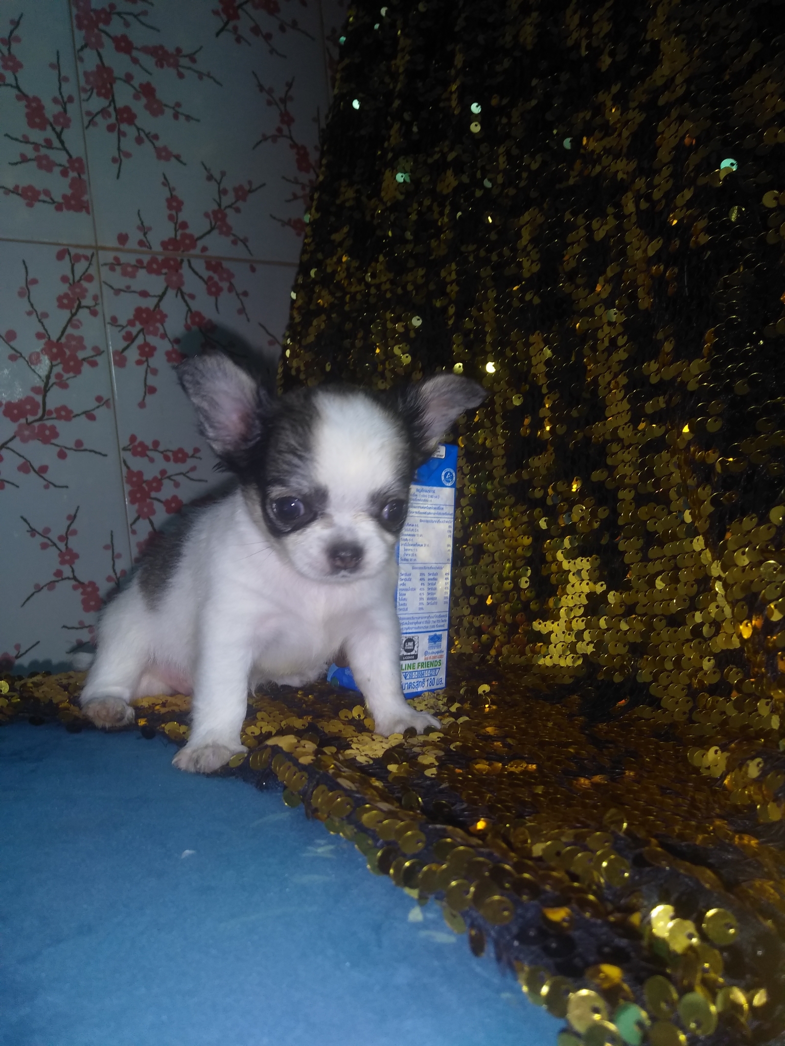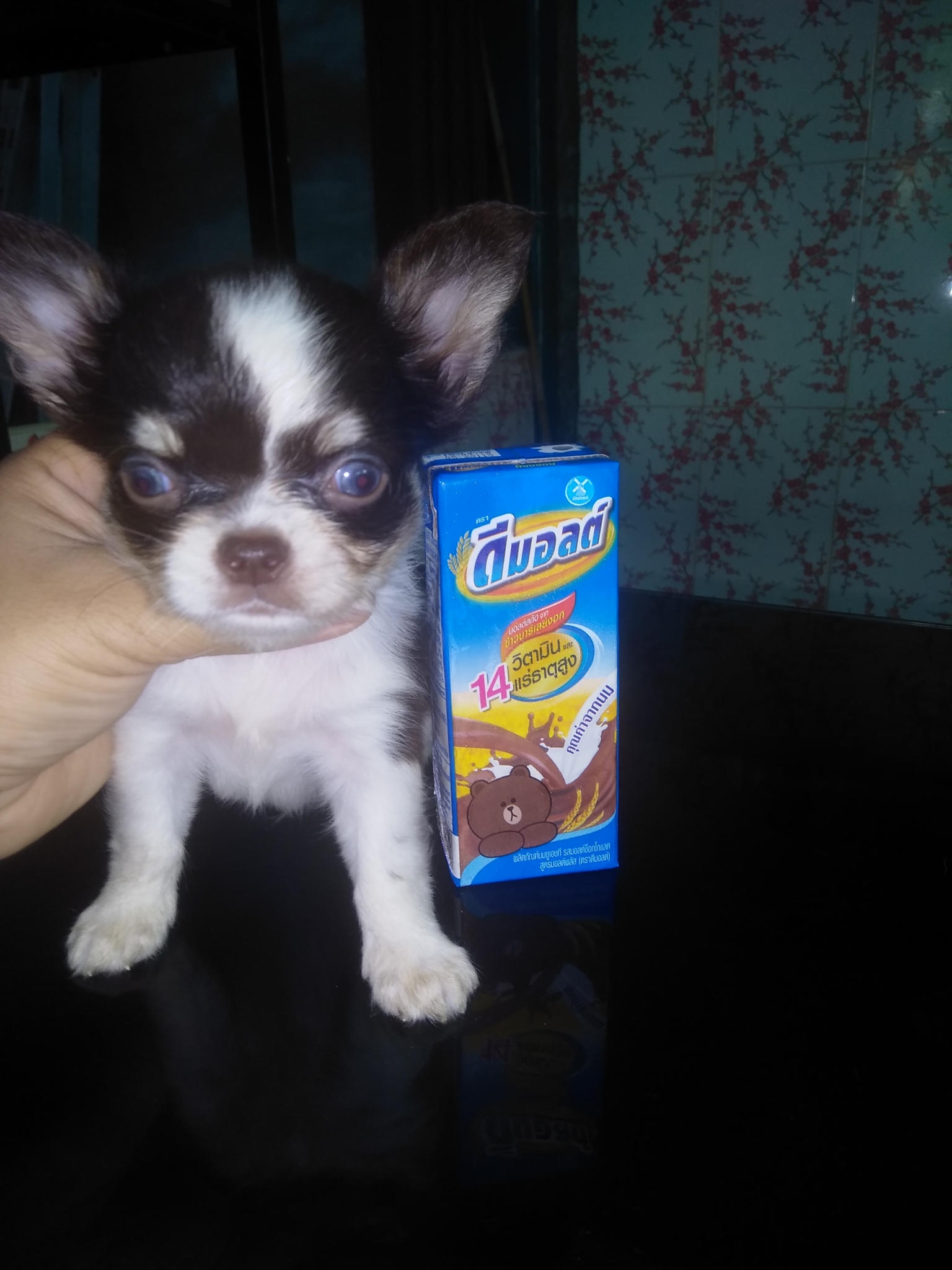 พ่อ เป็นชิวาว่าขนยาวสีขาว ดำ