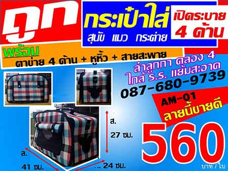 กระเป๋าใส่สุนัข กระเป๋าใส่หมา กระเป๋าใส่แมว กระเป๋าหิ้ว กระเป๋าสะพาย กระเป๋าเดินทาง AM-02 ลายนี้ขายดี กรงหมา กรงแมว กรงกระต่าย กรงสุนัข กรงกรงพับได้ กรงเหล็ก เป้ กระเป๋าเป้ อุปกรณ์สัตว์เลี้ยง ลำลูกกาคลอง 4 ใกล้โรงเรียนแย้มสะอาด