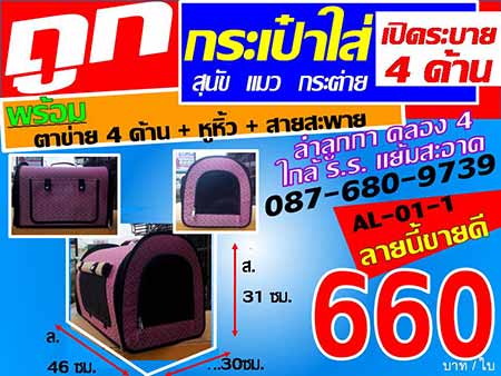กระเป๋าใส่สุนัข กระเป๋าใส่หมา กระเป๋าใส่แมว กระเป๋าหิ้ว กระเป๋าสะพาย กระเป๋าเดินทาง AL-01-1 ลายนี้ขายดี กรงหมา กรงแมว กรงกระต่าย กรงสุนัข กรงกรงพับได้ กรงเหล็ก เป้ กระเป๋าเป้ อุปกรณ์สัตว์เลี้ยง ลำลูกกาคลอง 4 ใกล้โรงเรียนแย้มสะอาด