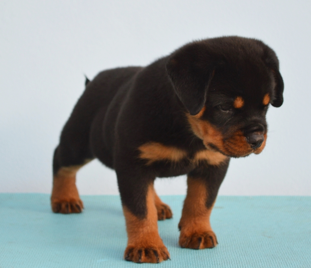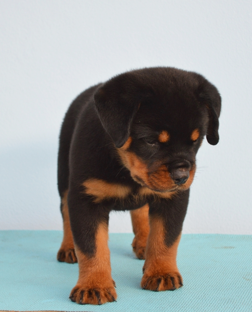 ขายลูกร็อคไวเลอร์ อายุ 45 วัน เพศผู้ 1 ตัว เพศเมีย 2 ตัว วัคซีน1 เข็ม โครงสร้างใหญ่ สต็อปหน้าสั้น กระบอกปากใหญ่ ใบเพ็ดดีกรีเต็มใบ