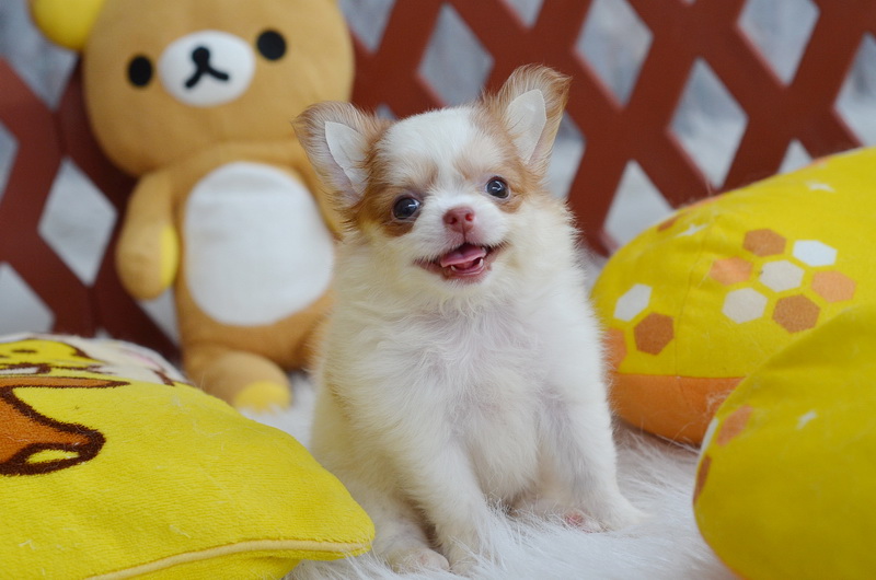 ★^-^*★ WWW.WOWWCHIHUAHUA.COM★ ^-^*★."น้องโมริ" ชิวาวาเพศเมีย ขนยาว สีขาวชอคโกแลตอ่อน 11500