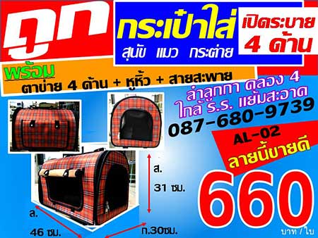 กระเป๋าใส่สุนัข กระเป๋าใส่หมา กระเป๋าใส่แมว กระเป๋าหิ้ว กระเป๋าสะพาย กระเป๋าเดินทาง AL02 ลายนี้ขายดี กรงหมา กรงแมว กรงกระต่าย กรงสุนัข กรงกรงพับได้ กรงเหล็ก เป้ กระเป๋าเป้ อุปกรณ์สัตว์เลี้ยง ลำลูกกาคลอง 4 ใกล้โรงเรียนแย้มสะอาด