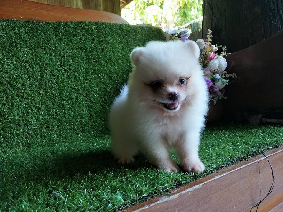 ปอมปอมเพศผู้สีขาวครีมนะคะเพียง 6500 ถ่ายพยาธิและฉีดวัคซีนราคาต่อรองได้คะ