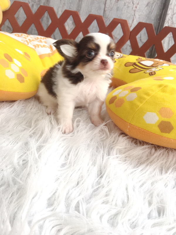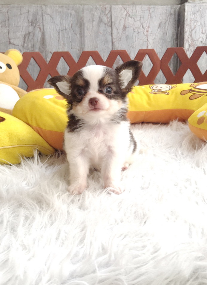 ★^-^*★ WWW.WOWWCHIHUAHUA.COM★ ^-^*★."น้องยู่ยี่" ชิวาวาเพศเมีย ขนยาว สีขาวชอคโกแลต 11500