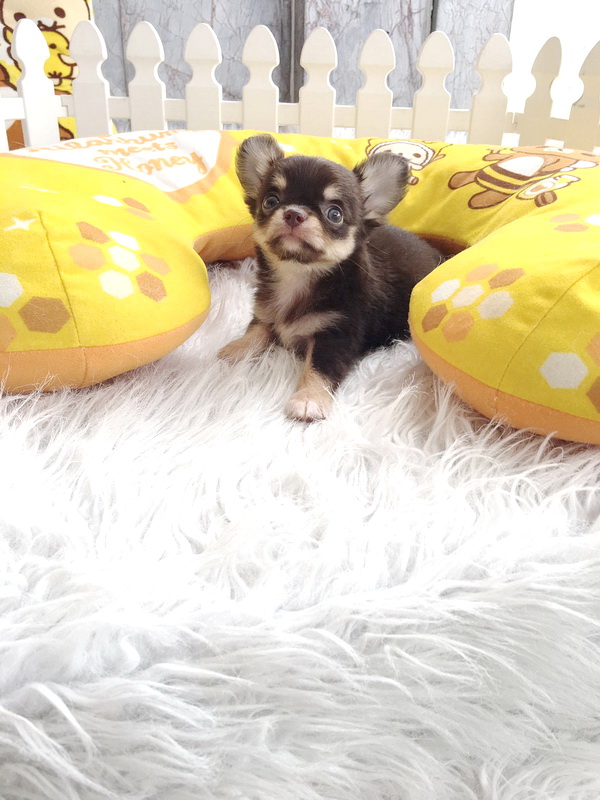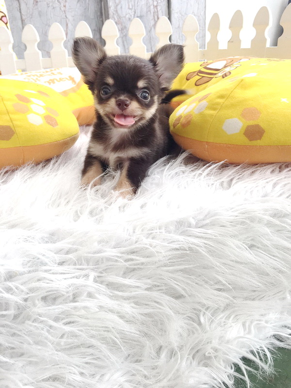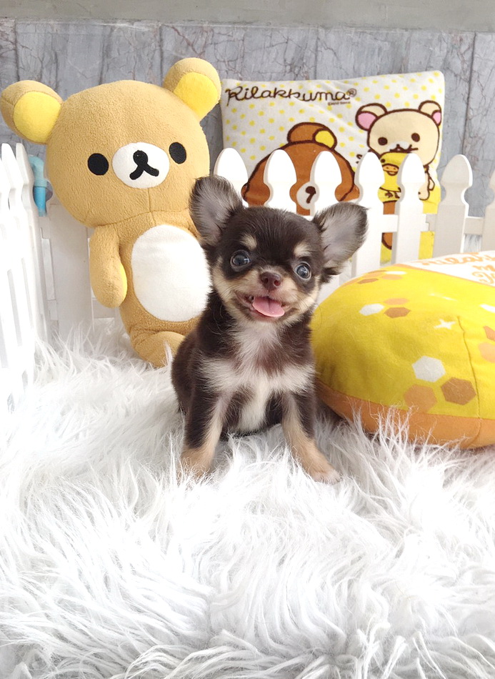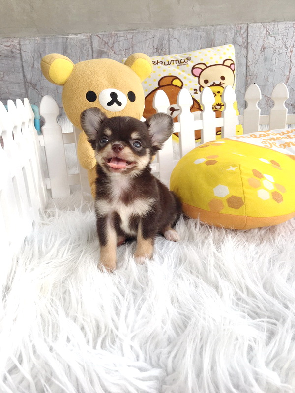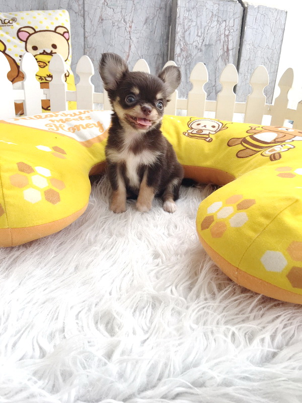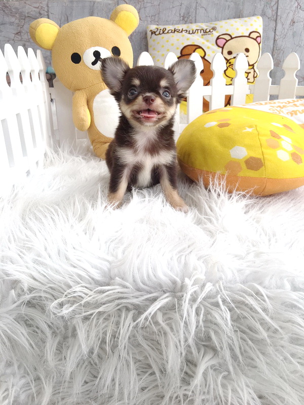 ★^-^*★ WWW.WOWWCHIHUAHUA.COM★ ^-^*★."น้องแซลมอน" ชิวาวาเพศผู้ ขนยาว สีชอคโกแลตแทน 12500