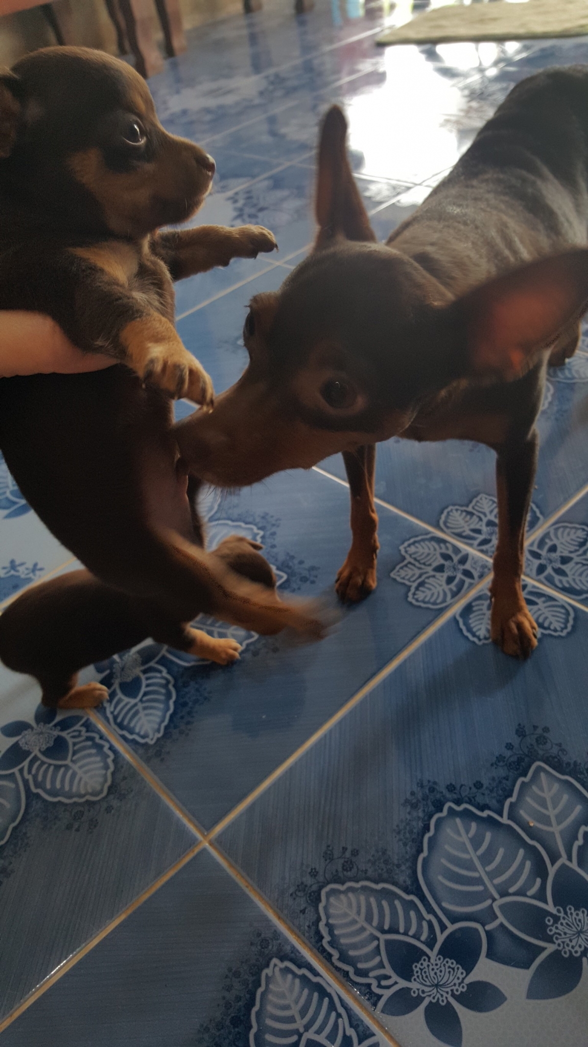 ลูกมิเนเจอร์ผสมชิวาวา สีช็อค เพศ ชาย 1 + เพศ ญ. 1