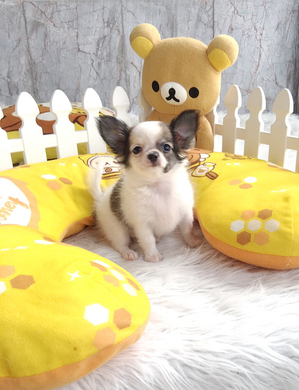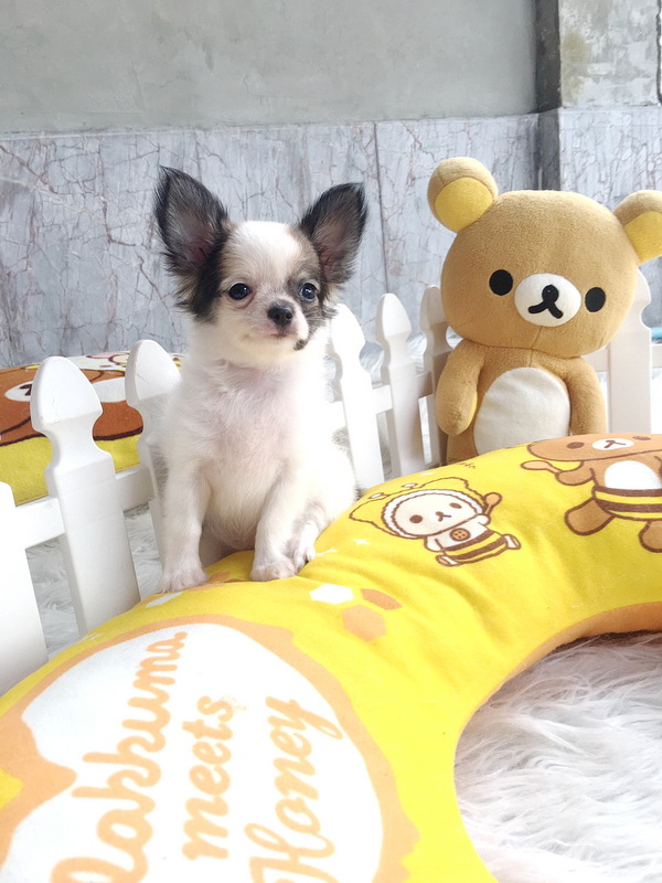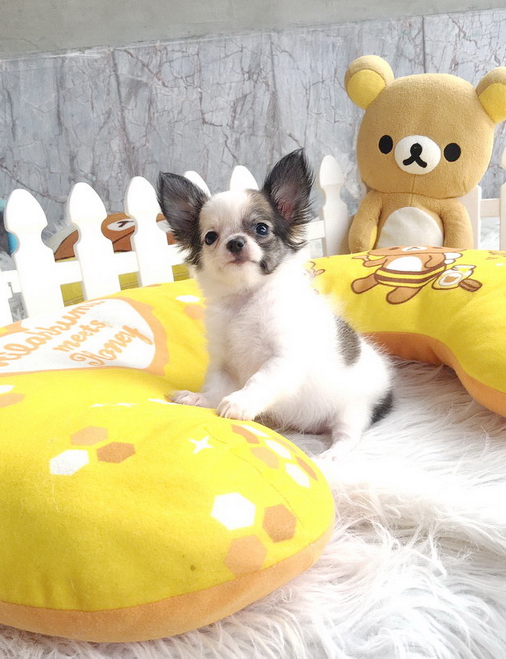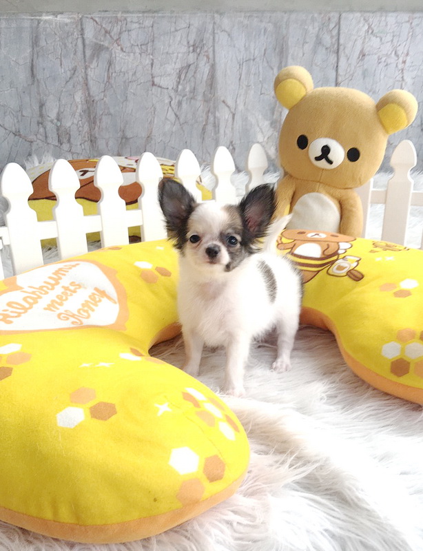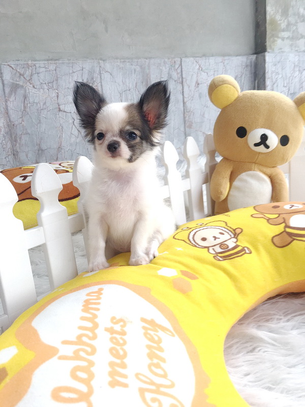 ★^-^*★ WWW.WOWWCHIHUAHUA.COM★ ^-^*★."น้องมะนาว" ชิวาวาเพศเมีย ขนยาว สีขาวน้ำตาล 7500