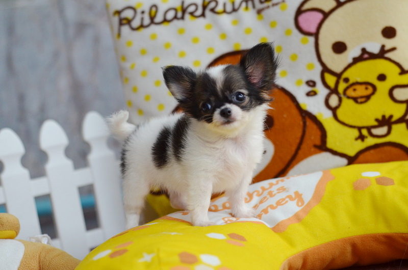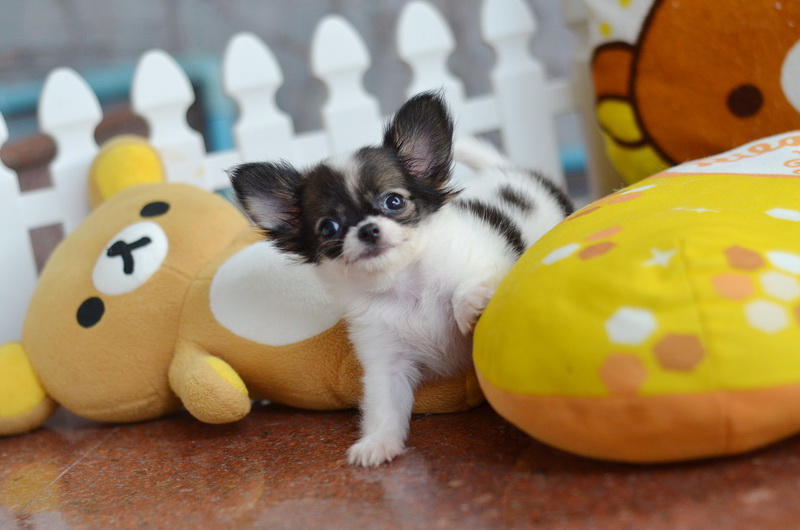 ★^-^*★ WWW.WOWWCHIHUAHUA.COM★ ^-^*★."น้องมะตูม" ชิวาวาเพศเมีย ขนยาว สีขาวน้ำตาล 8500