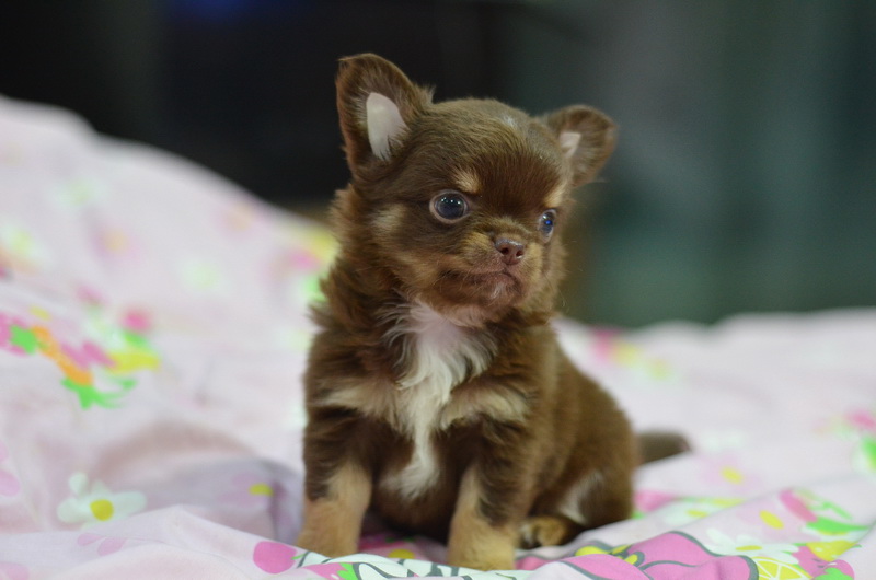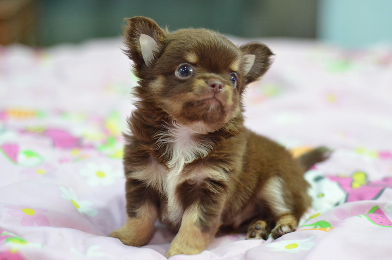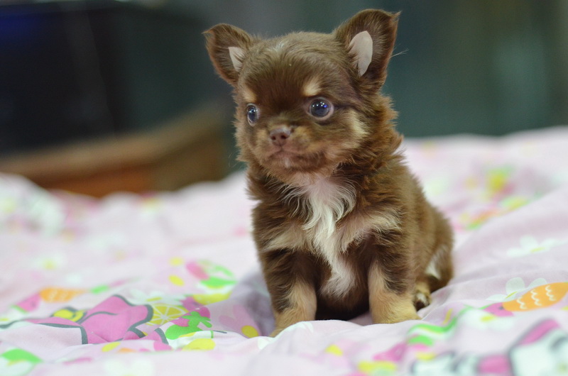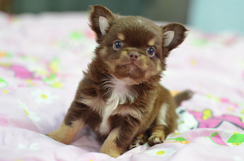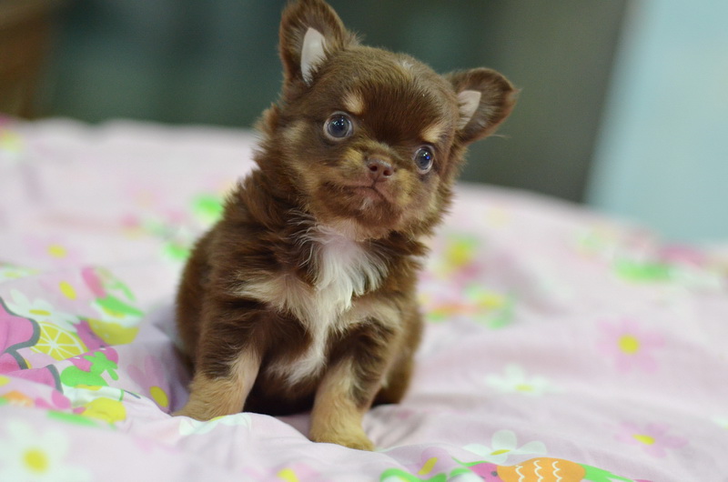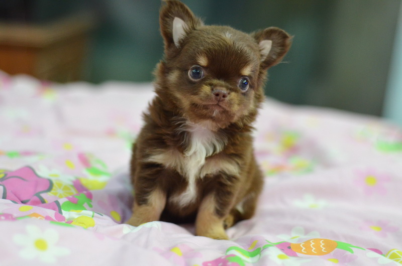 ชิวาวาเพศผู้ ขนยาว สีชอคโกแลตแทน