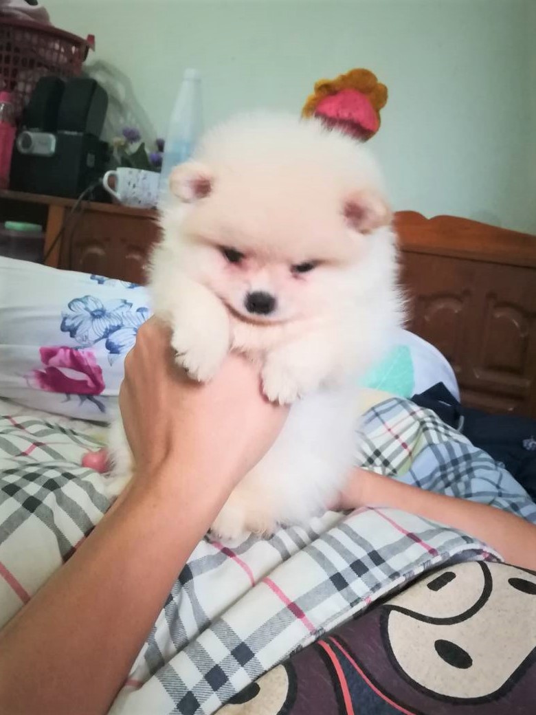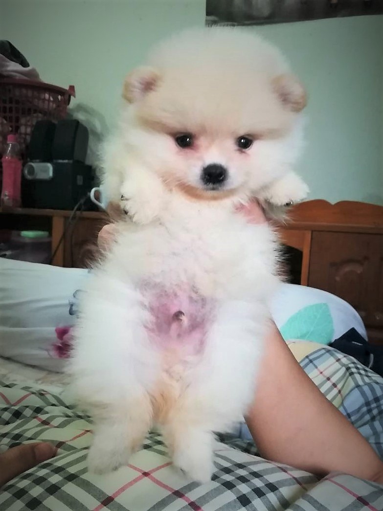 ขายน้องปอมแท้ เพศผู้ สีขาวครีม อายุ 46 วัน