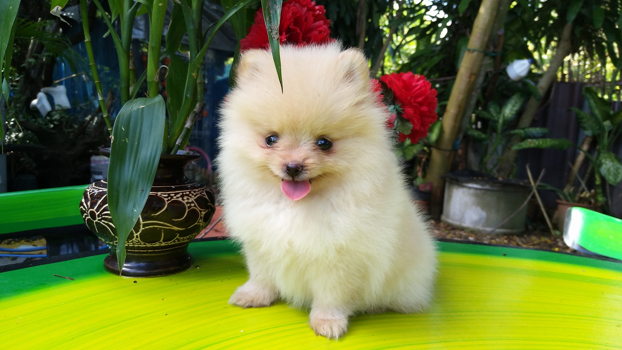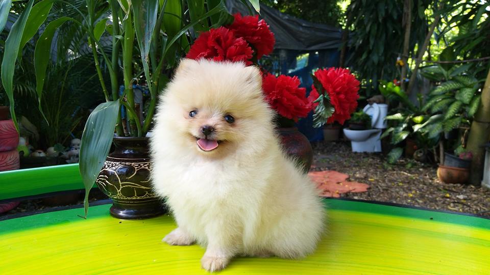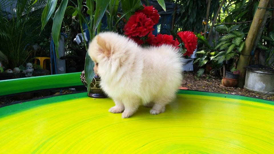 ปอมเมเรเนียนแท้ สีขาวครีม ตัวเล็ก ขนแน่นขาสั้น เพศเมีย