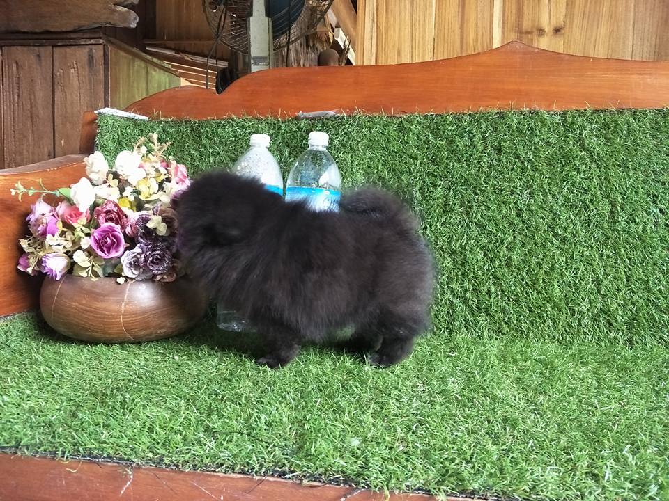 Sale.ปอมเพศผู้สีดำควันบุหรี่ฟอร์มเลี้ยงเล่นหน้าจิ้งจอก เพียง 3500 พร้อมฉีดวัคซีนนะจ๊ะ