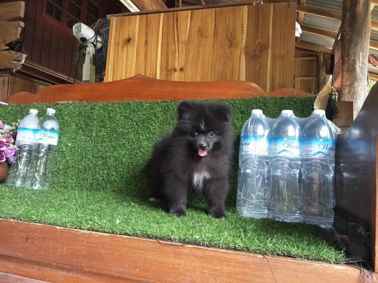 Sale.ปอมเพศผู้สีดำควันบุหรี่ฟอร์มเลี้ยงเล่นหน้าจิ้งจอก 3000 เท่านั้นสอบถามได้จ๊ะ