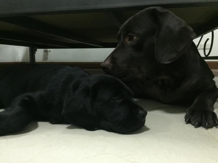 Her mom is chocolate labrador who is our family pet. She has a fantastic temperament with people and kids and other dogs. Her dad is yellow labrador with strong and beautiful shape