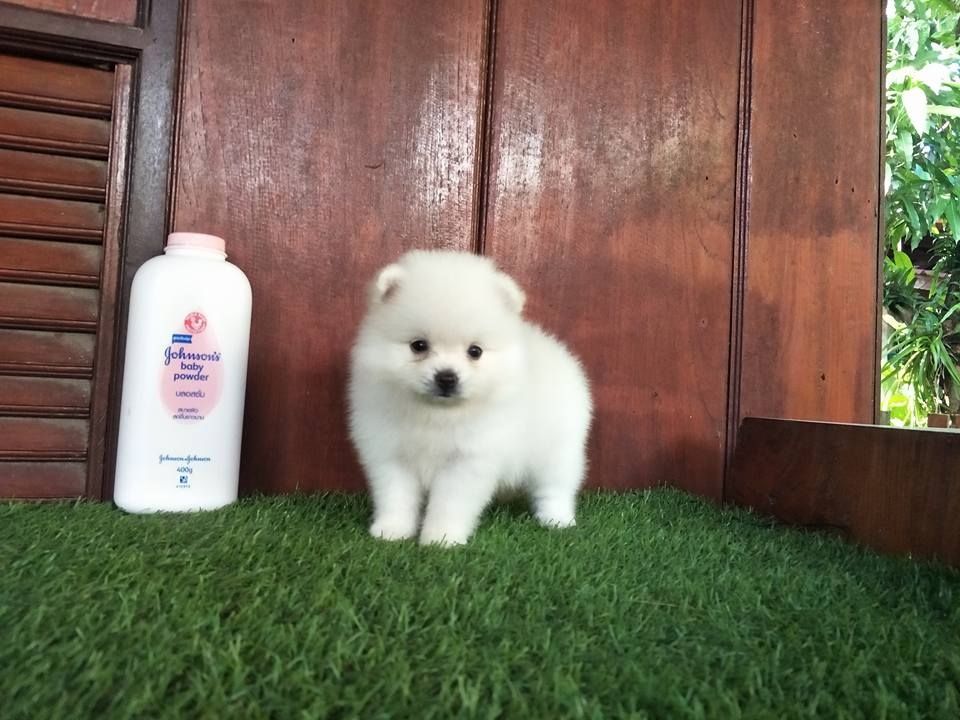 ปอมเพศผู้สีขาวครีมฟอร์มเลี้ยงเล่น น่ารัก สวยๆจ๊ะ
