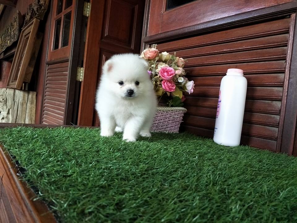 ปอมเพศผู้สีขาวครีมฟอร์มเลี้ยงเล่น น่ารัก สวยๆจ๊ะ เพียง 5000 เท่านั้นจ๊ะ