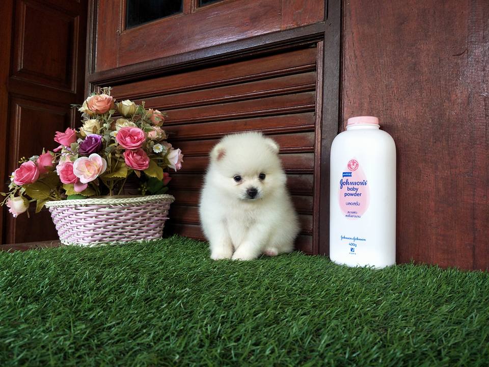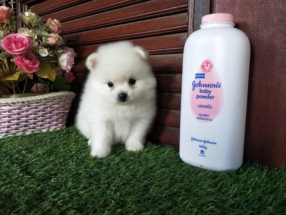 ปอมเพศผู้สีขาวครีมฟอร์มเลี้ยงเล่น น่ารัก สวยๆจ๊ะ