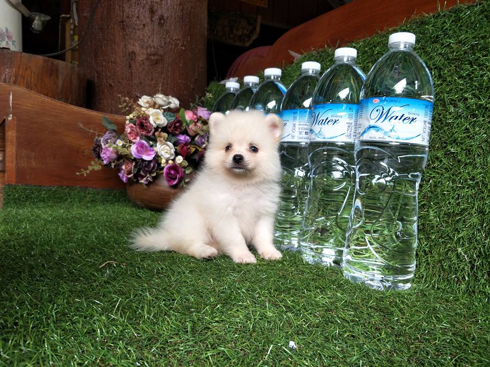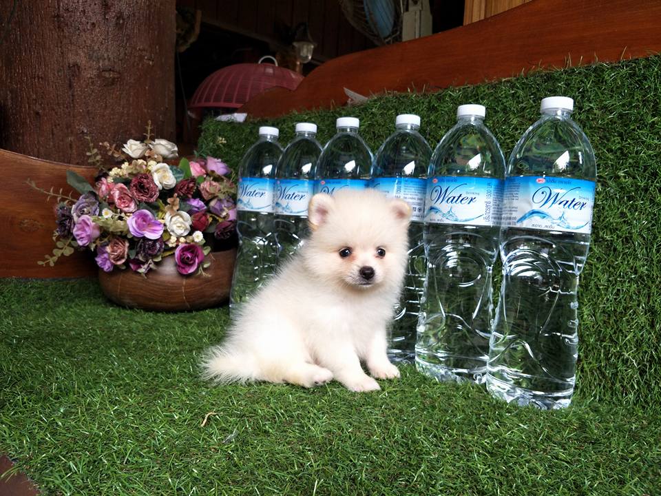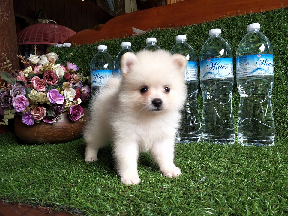 ปอมเพศผู้สีขาวครีมฟอร์มเลี้ยงเล่น น่ารัก สวยๆจ๊ะ