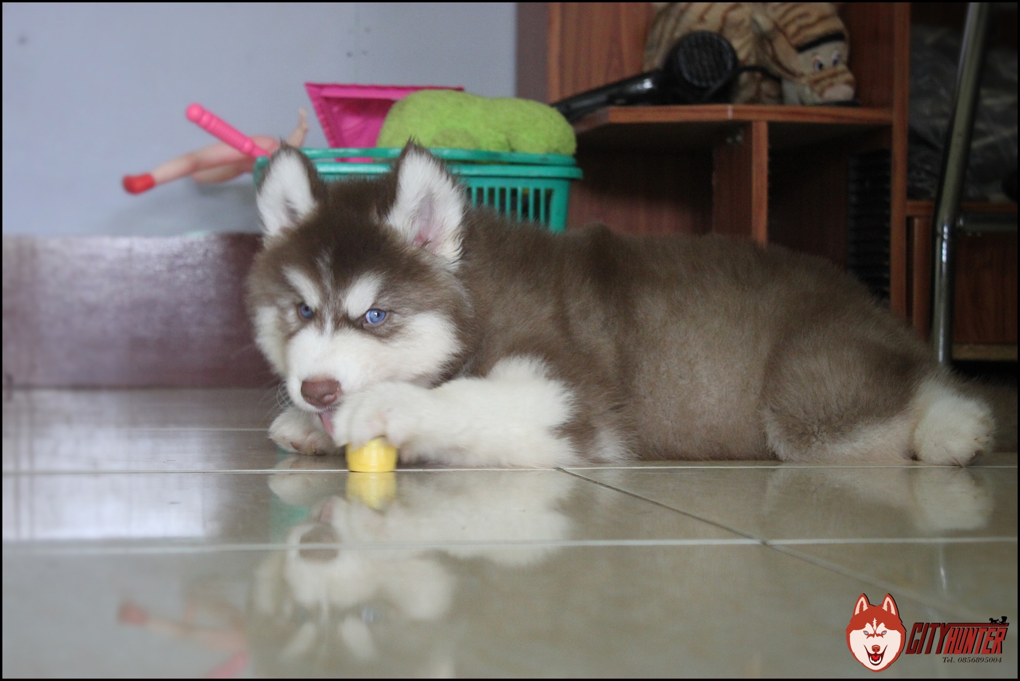 ขายลูกไซบีเรียน เพศผู้ สีคอปเปอร์ตาฟ้าคู่ อายุ 45 วัน