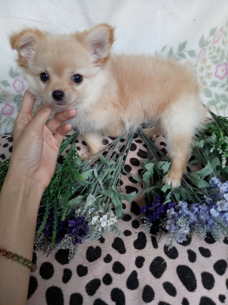 พันธุ์ผสมพ่อปอมขาวแม่ชิวาวาขนยาว