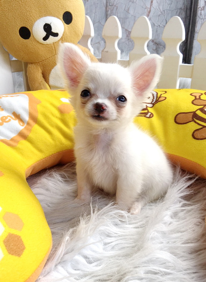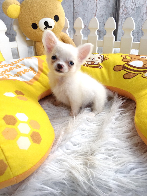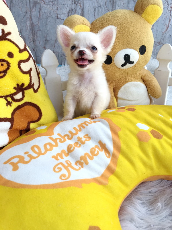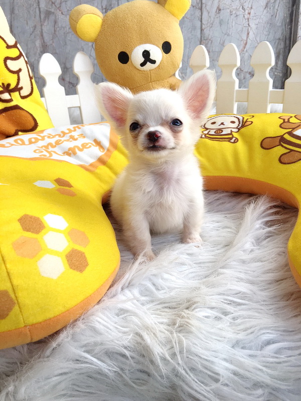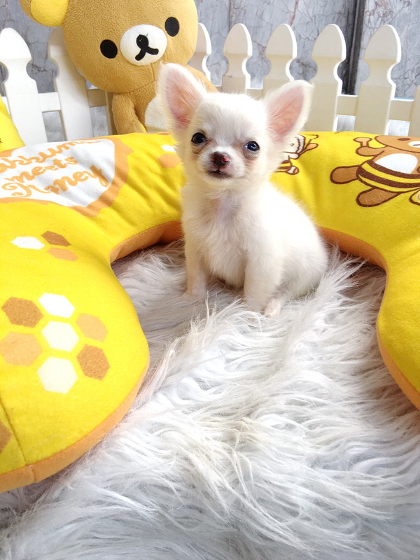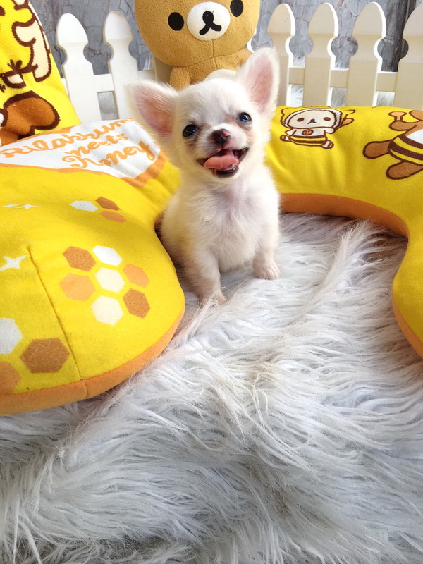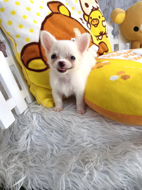 ★^-^*★ WWW.WOWWCHIHUAHUA.COM★^-^*★."น้องพีนัท" ชิวาวาเพศผู้ ขนยาว สีขาวครีม 9500