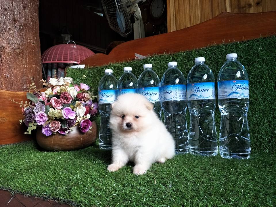 ปอมเพศผู้สีขาวครีมฟอร์มเลี้ยงเล่น น่ารัก สวยๆจ๊ะ