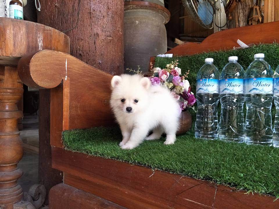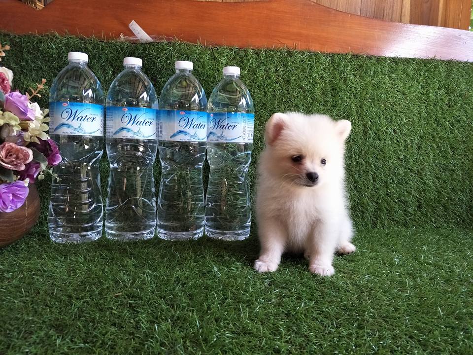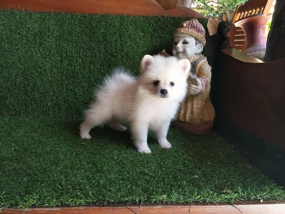 ปอมเพศผู้สีขาวครีมฟอร์มเลี้ยงเล่น น่ารัก สวยๆจ๊ะ