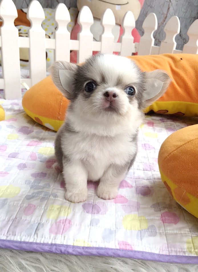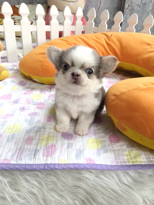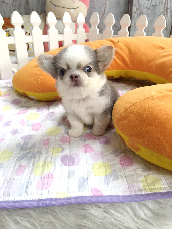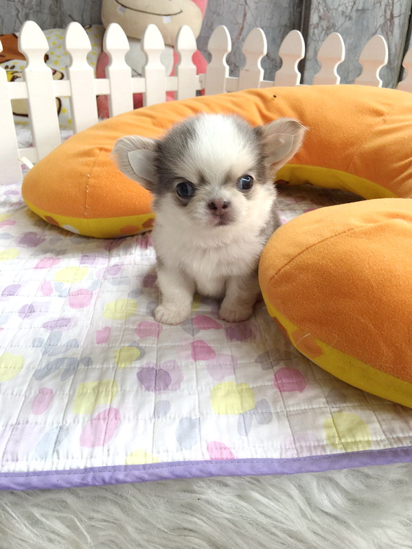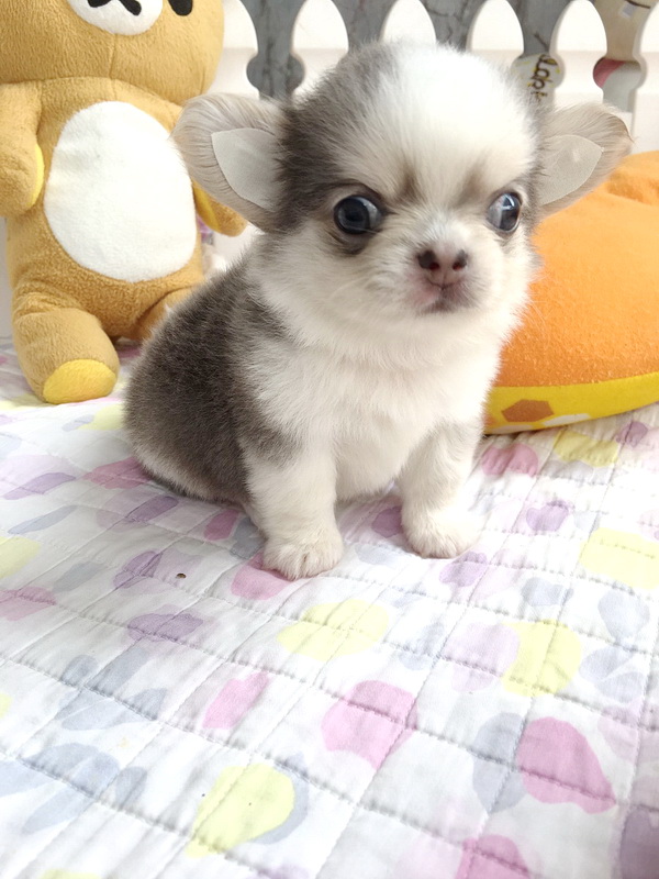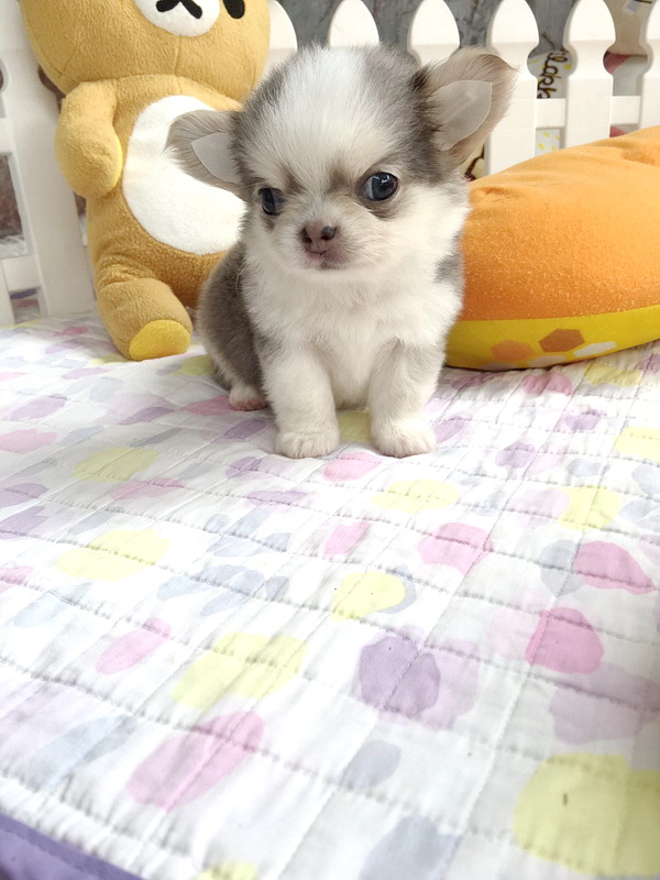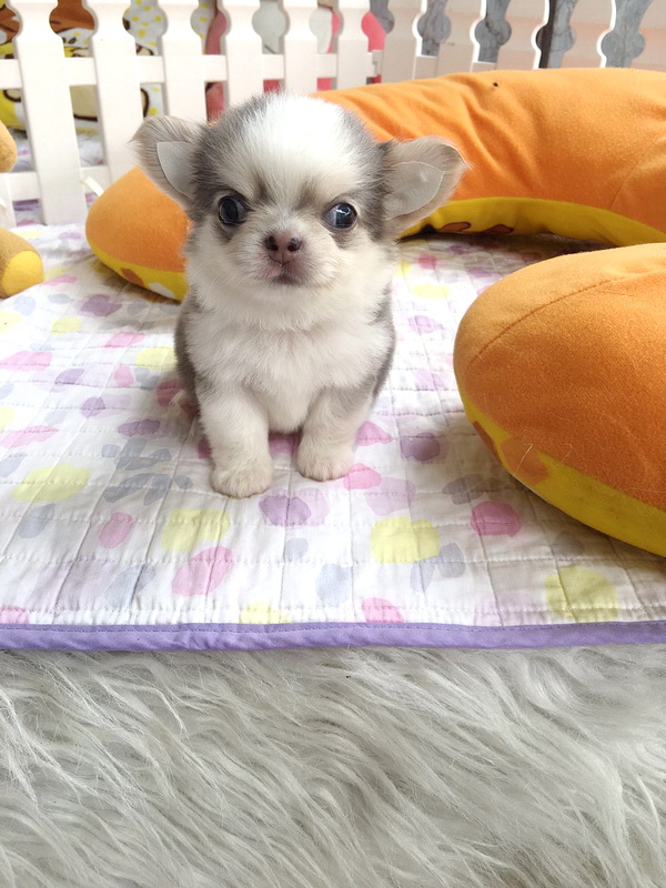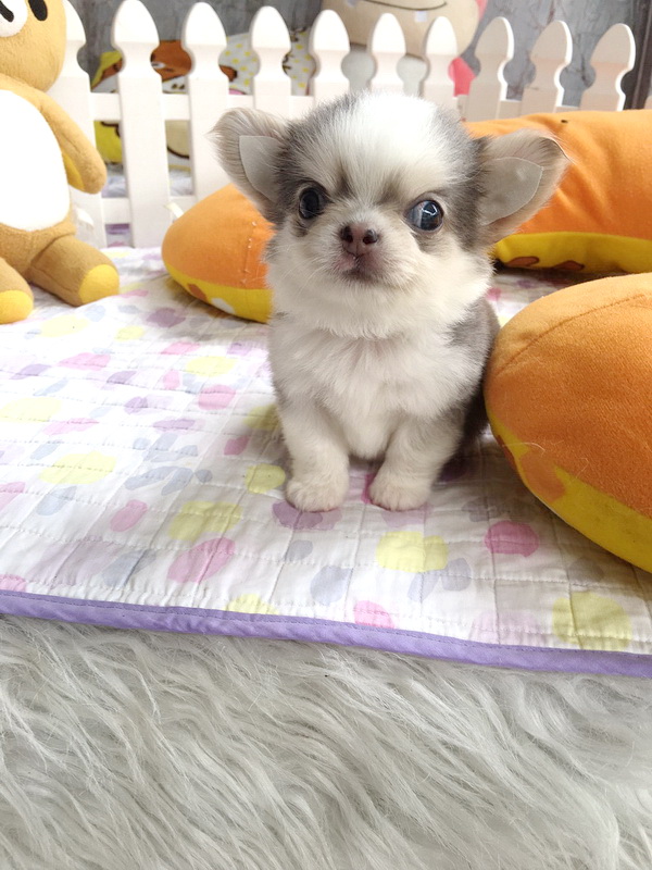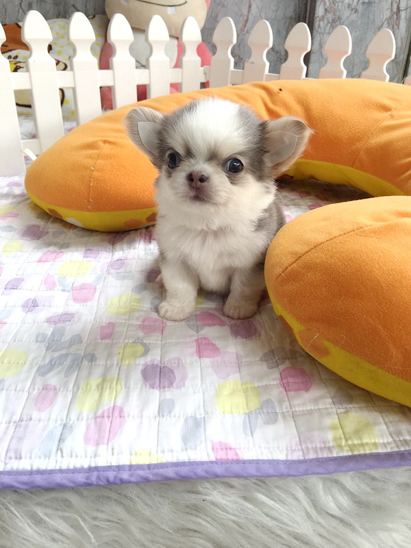 ★^-^*★ WWW.WOWWCHIHUAHUA.COM ★^-^*★." น้องเมอแรงก์" ชิวาวาเพศเมีย ขนยาว สีขาวเทาสวาท 13500