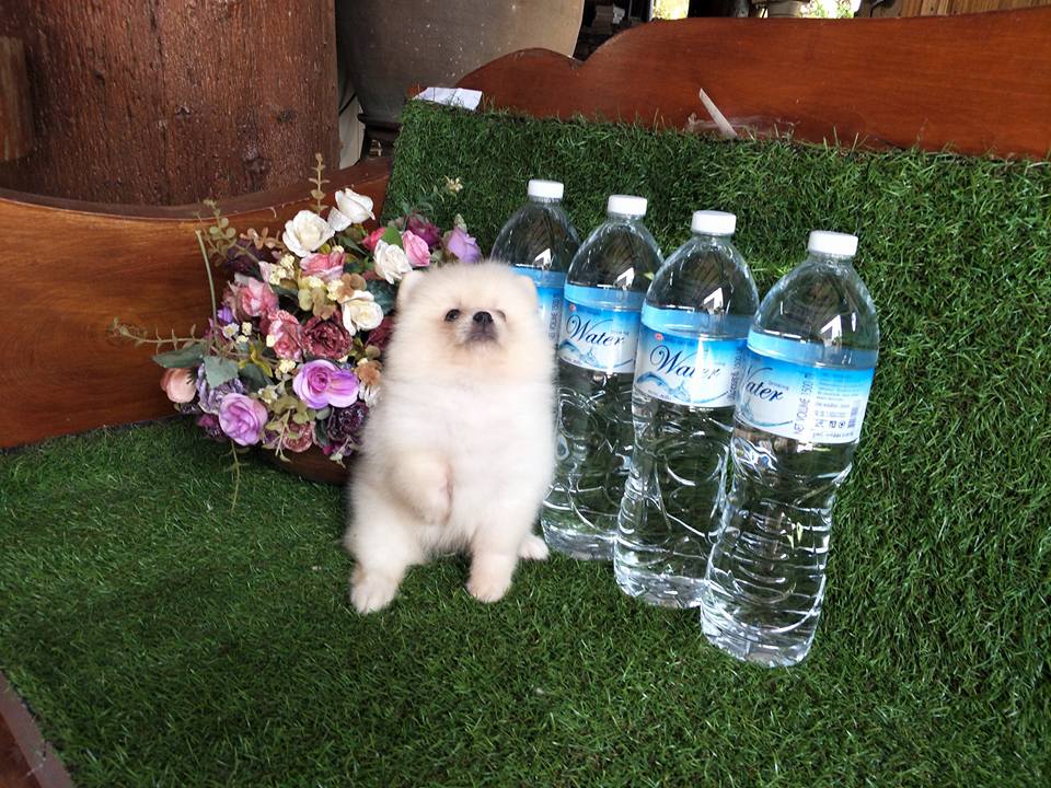 ปอมเพศผู้สีขาวครีมฟอร์มเลี้ยงเล่น น่ารัก สวยๆจ๊ะ