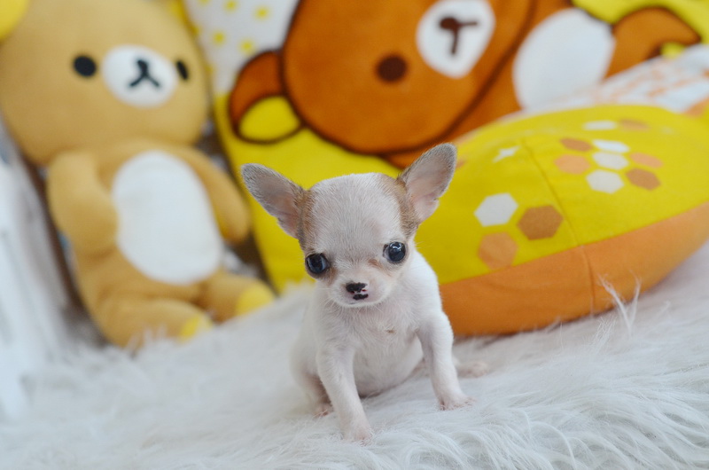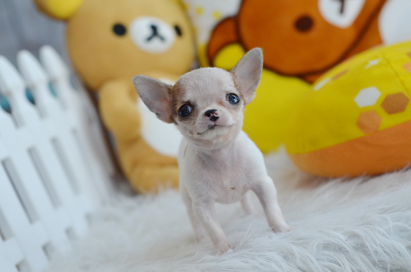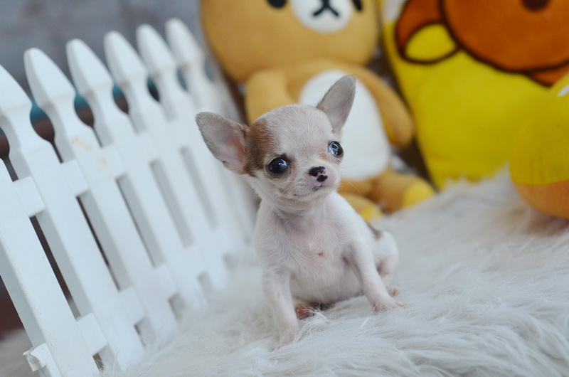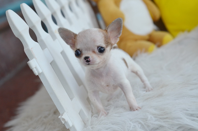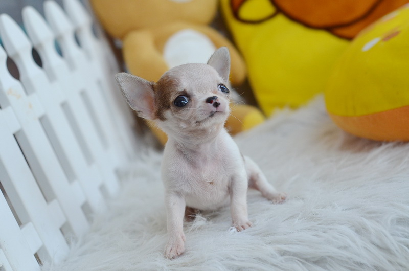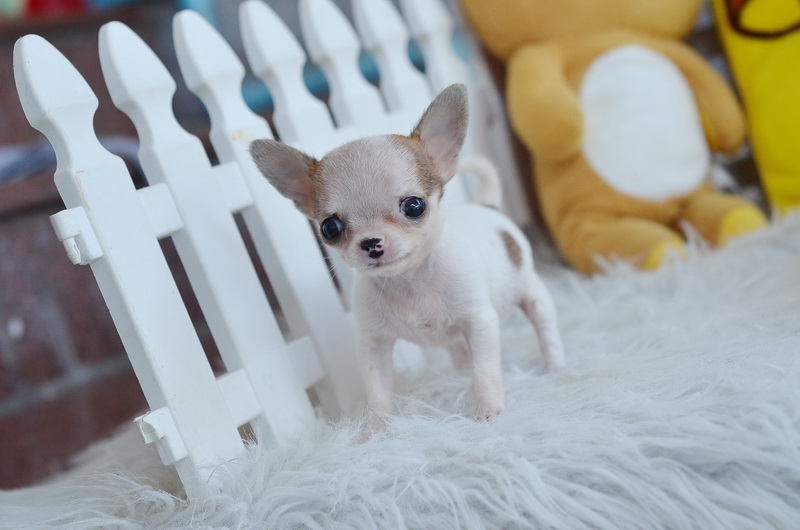 ★^-^*★ WWW.WOWWCHIHUAHUA.COM★ ^-^*★."น้องมันม่วง" ชิวาวาเพศเมียขนสั้น ทีคัพ หัวสวยมาก สีขาวน้ำตาล 95