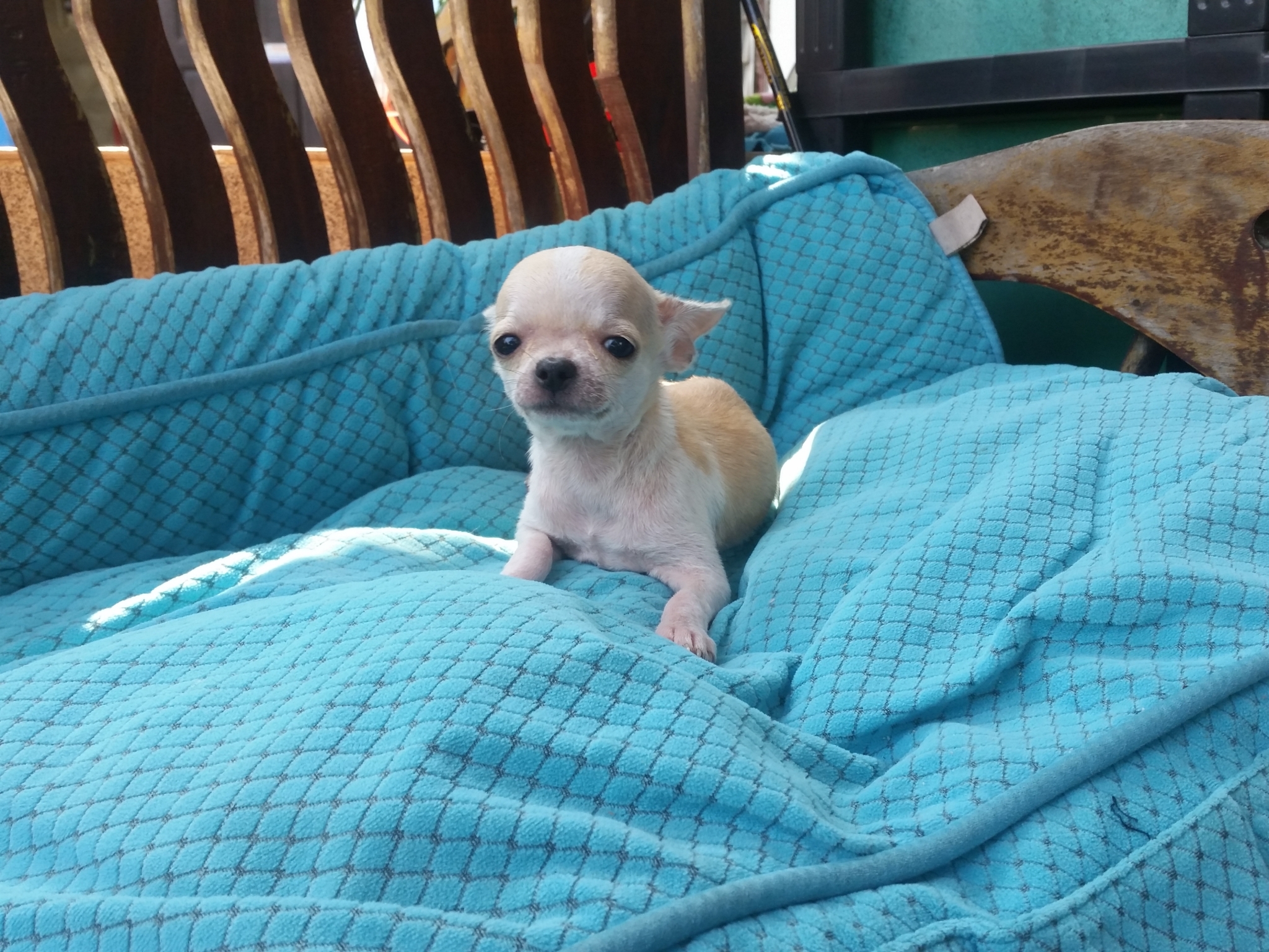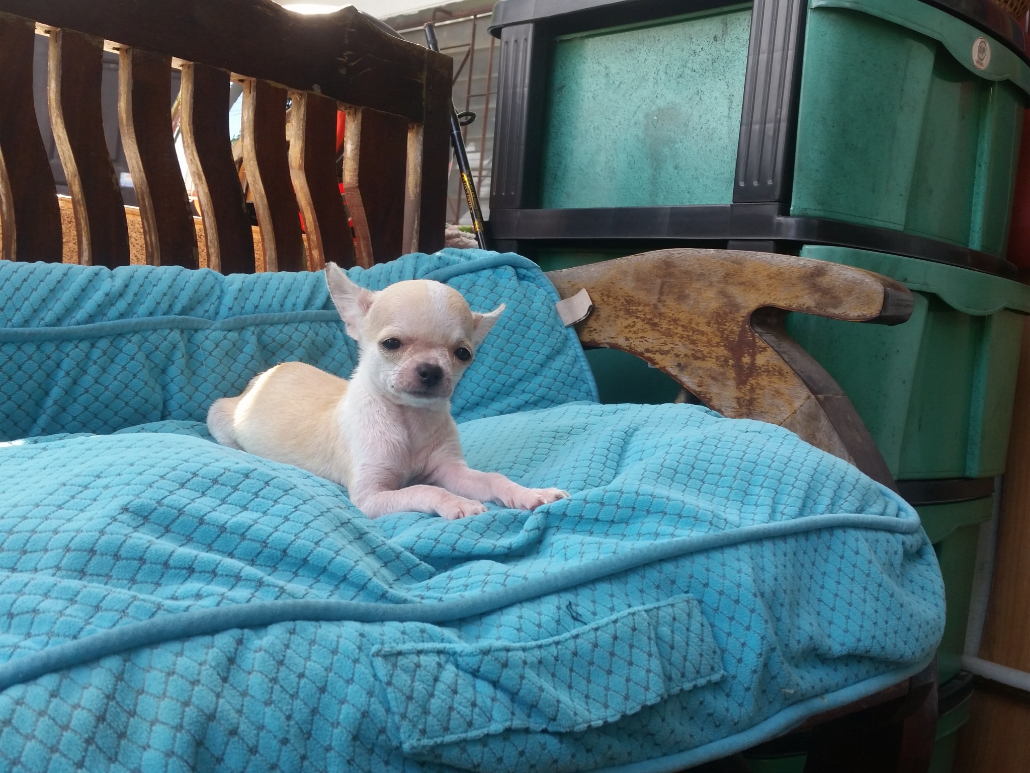 ชิวาวา ขนสั้นเพศผู้/สีขาว-ตาล/หัวเม่งๆไซด์เล็กๆ น่ารักมากมายสนใจสอบถามได้นะคะ อยู่อุดรบริการจัดส่ง081-7172660🆔dc.puppy