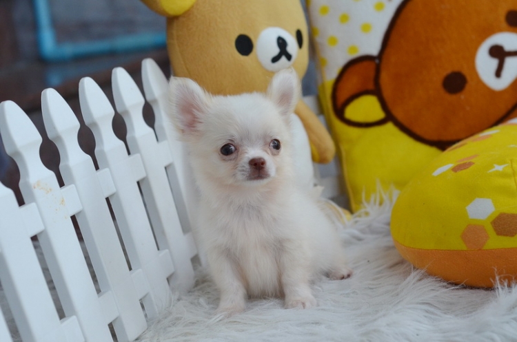 ชิวาวาเพศผู้ ขนยาว สีขาวครีม ราคา 7900