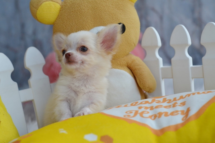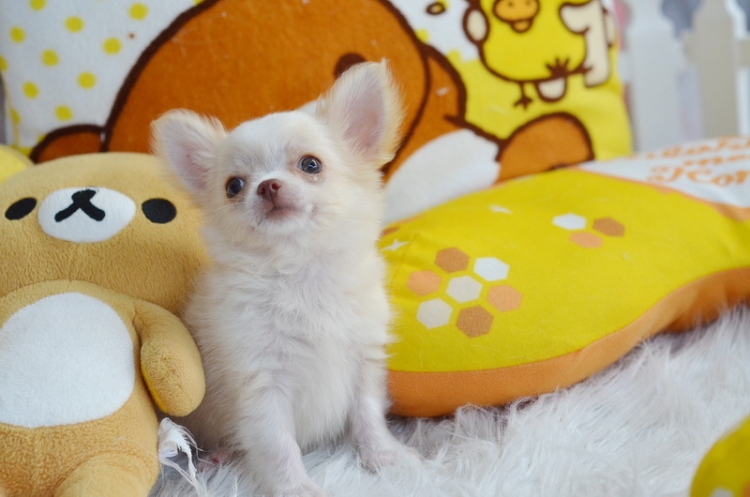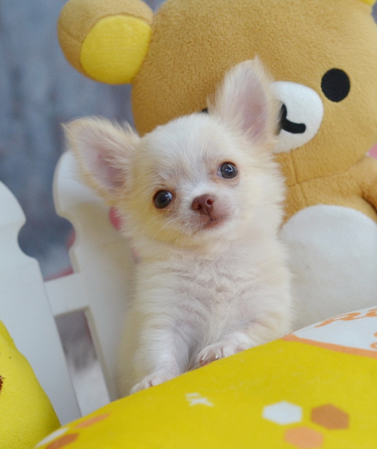 ชิวาวา เพศผู้ ขนยาว สีขาวครีม ราคา 7900 บาท