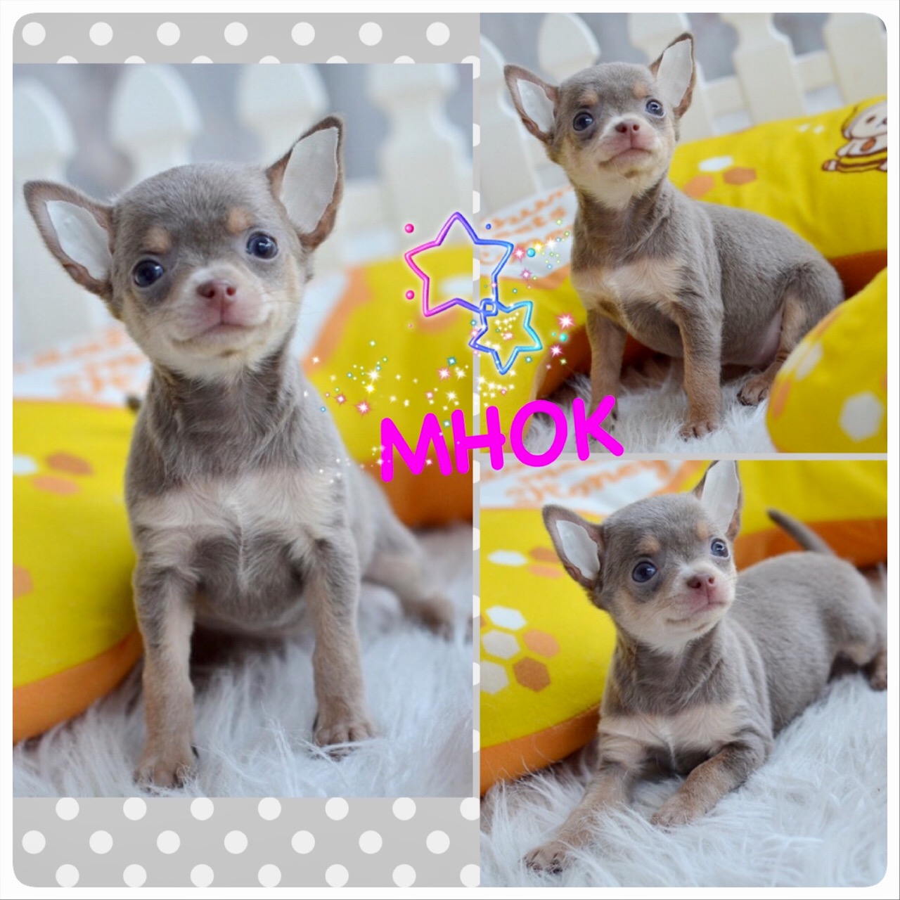 2 ชิวาวาเพศเมียขนสั้น สีเทา สีแฟนซี