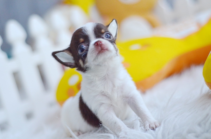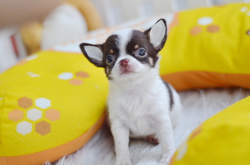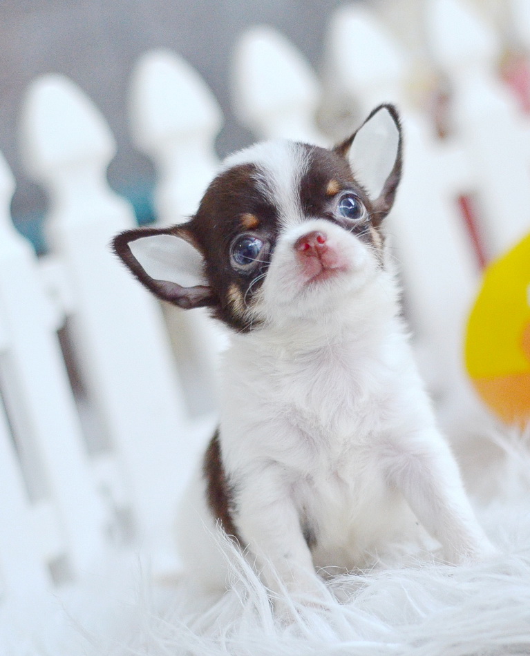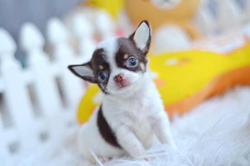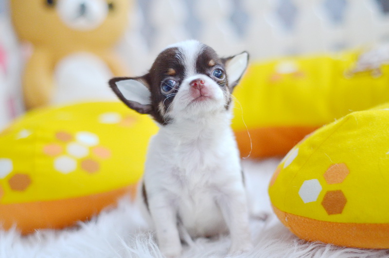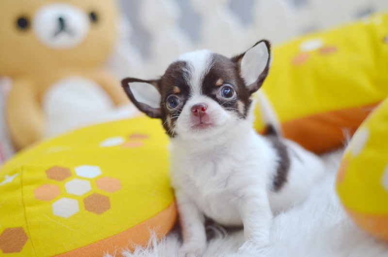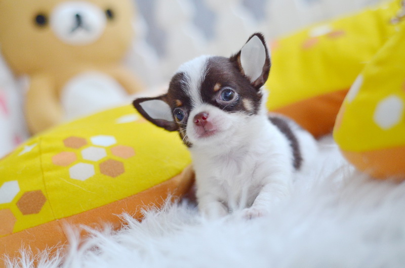 ★^-^*★ WWW.WOWWCHIHUAHUA.COM ★^-^*★." น้องซีโร่" ชิวาวาเพศผู้ ขนสั้น สีขาวชอคโกแลต 9500
