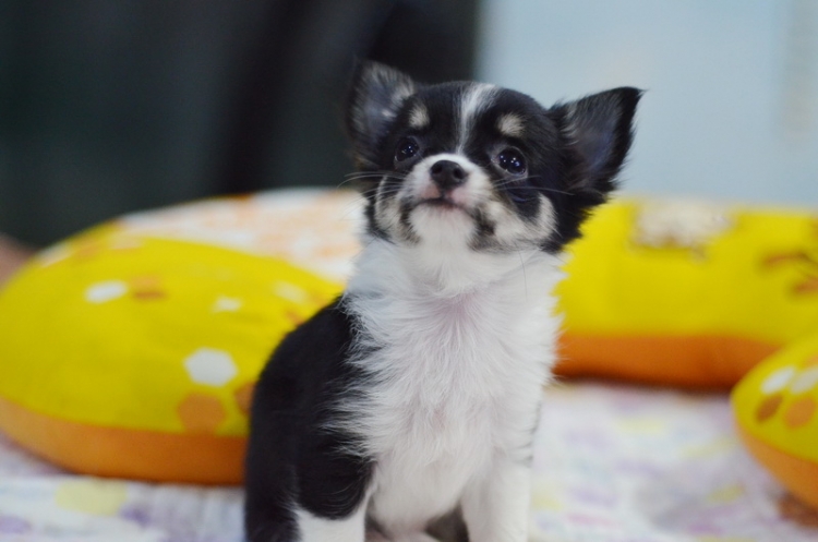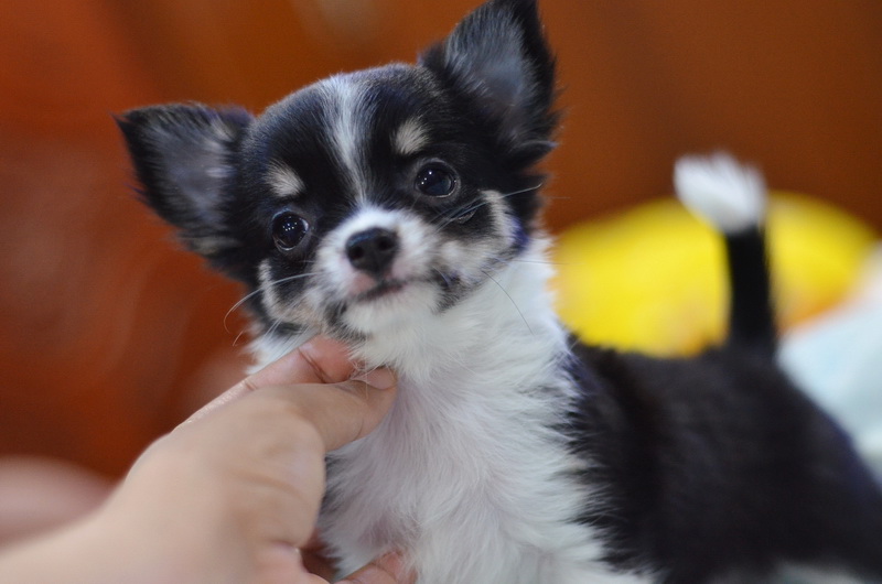 ชิวาวาเพศเมีย ขนยาว สีแบลคแทนไวท์มาร์ก ราคา 9500