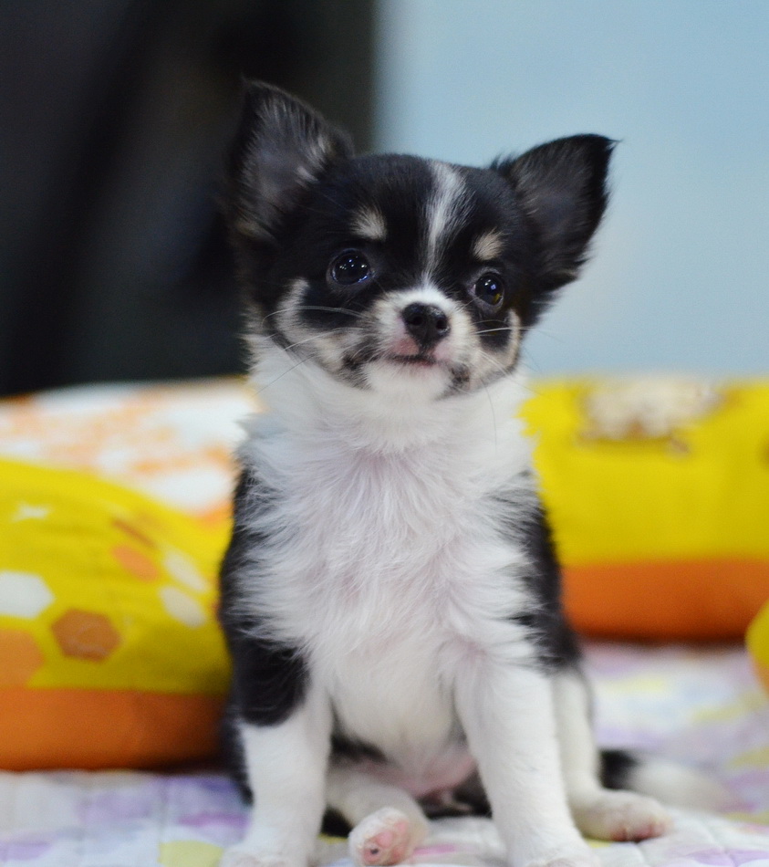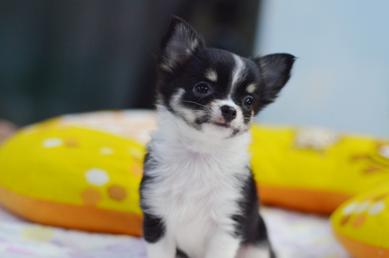 ★^-^*★ WWW.WOWWCHIHUAHUA.COM ★^-^*★." น้องกุ๊กไก่" ชิวาวาเพศเมีย ขนยาว สีแบลแทนไวท์มาร์ก 9500