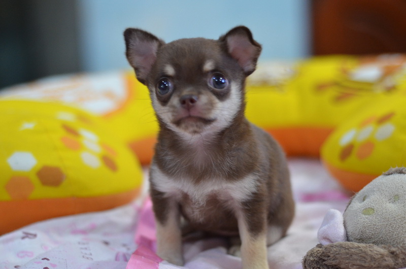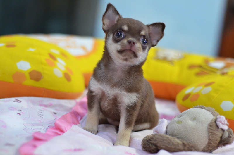 ★^-^*★ WWW.WOWWCHIHUAHUA.COM ★^-^*★." น้องข้าวตัง" ชิวาวาเพศเมีย ขนสั้น สีชอคโกแลตแทน 9500