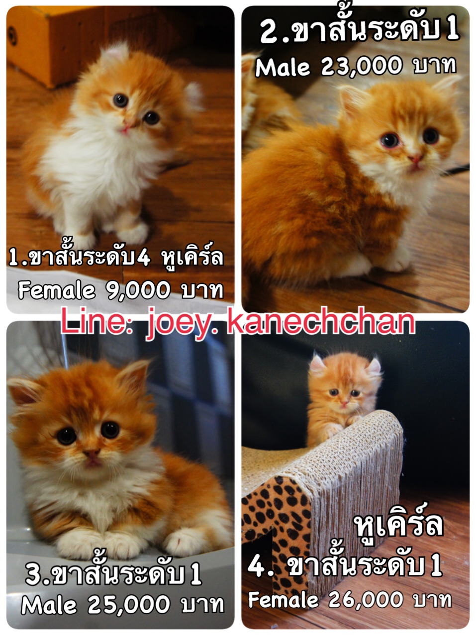 1.น้องแมวเพศหญิง ขาสั้นระดับ4 สีส้มขาว หูพลิก หน้าแบ๊ว ราคา 9000 บาท