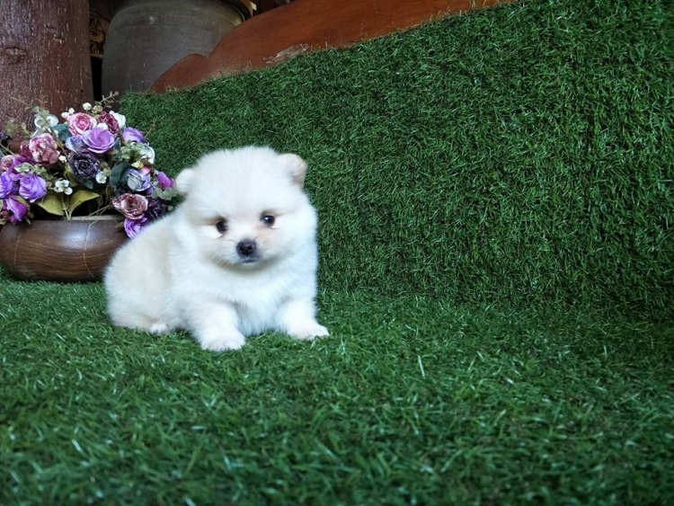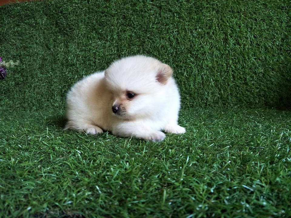 ปอมเพศผู้สีขาวครีมฟอร์มเลี้ยงเล่นหน้าจิ้งจอก 6500 ค๊า สอบถามได้นะคะ