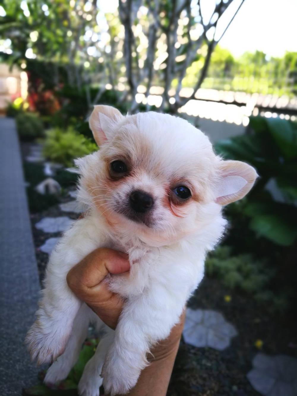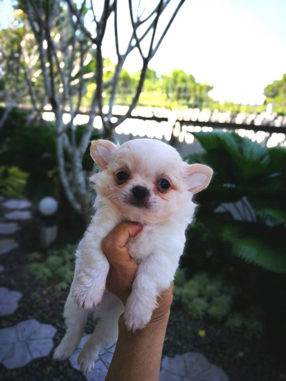น้องชิวาวา ตัวผู้ สีขาว-ครีม หน้าสั้น ตัวเล็ก ขนแน่นมั๊ก