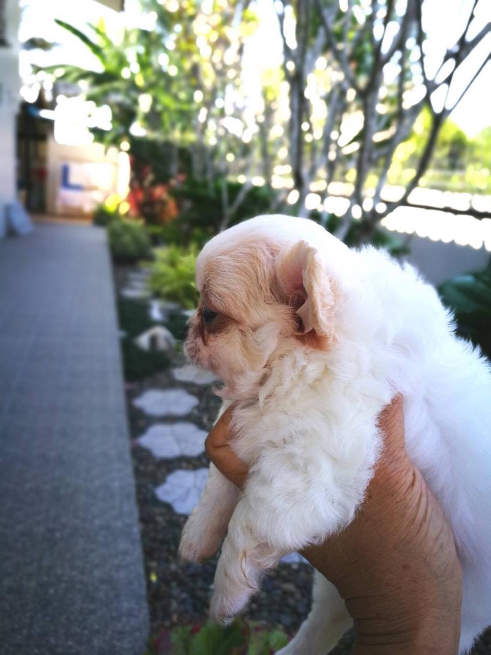 ตัวเล็กน่ารัก ขนแน่น !!! สีน้ำขาวครีม ตัวเล็ก หน้าสั้น ขนแน่น 🐶 ค่าสินสอดน้อง 8000 - 9000 พ่อน้อง คันหยิก (มีภาพ)