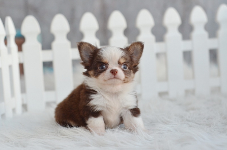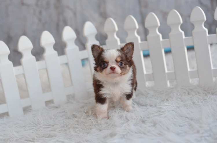 ชิวาวาเพศเมีย ขนยาว สีชอคโกแลตแทนไวท์มาร์ก